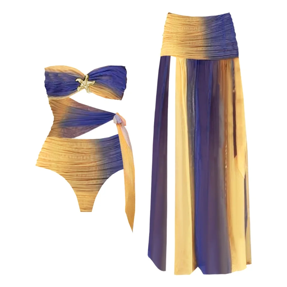 This two-piece swimsuit features a vest style and is made from a blend of polyester and spandex. The adjustable shoulder straps make for a comfortable fit, and there are no chemicals of concern used in its production. This swimsuit is woven with TAT techniques using polyamide material. The design includes a star pattern in a patchwork style, and it is tailored to fit women's bodies according to their normal sizes.