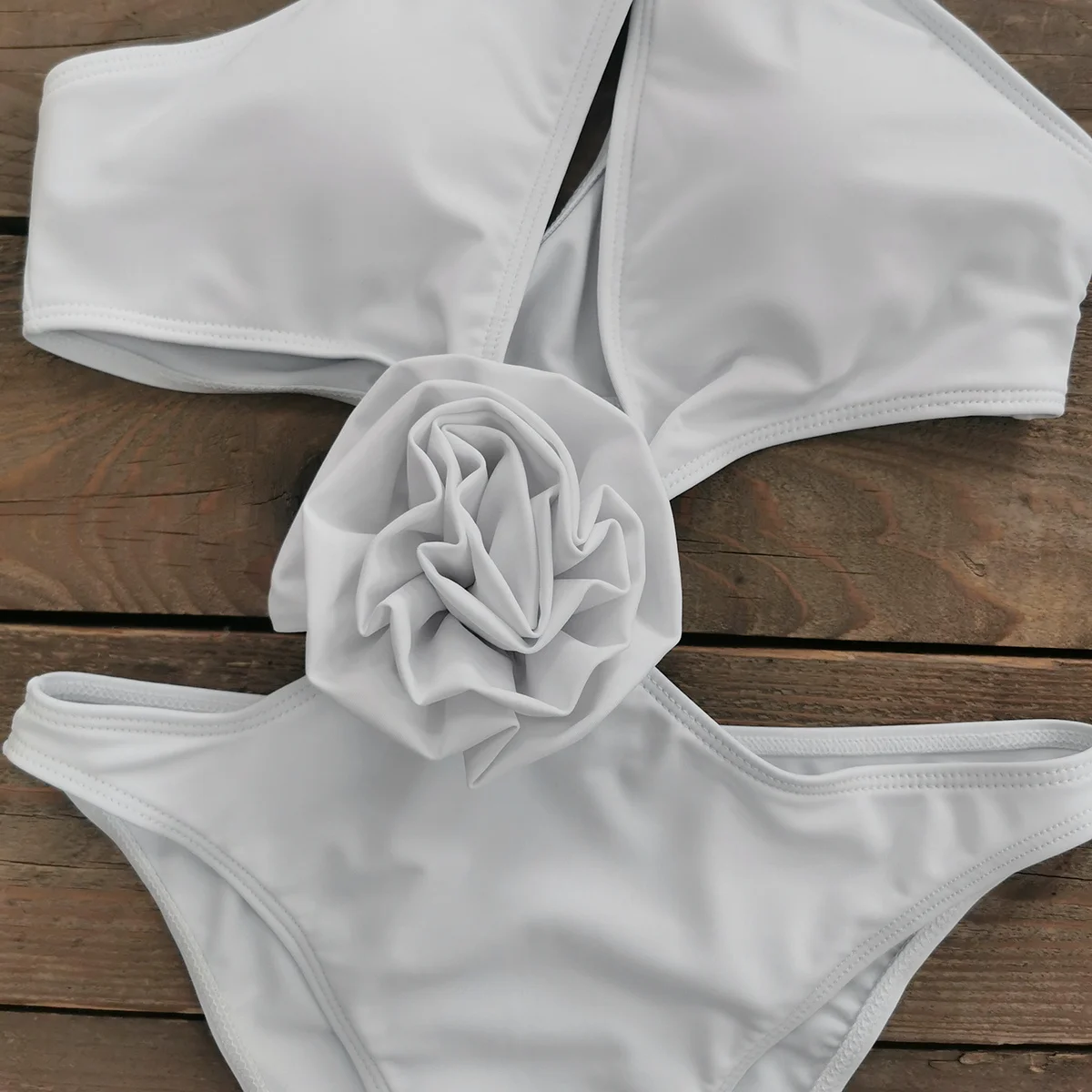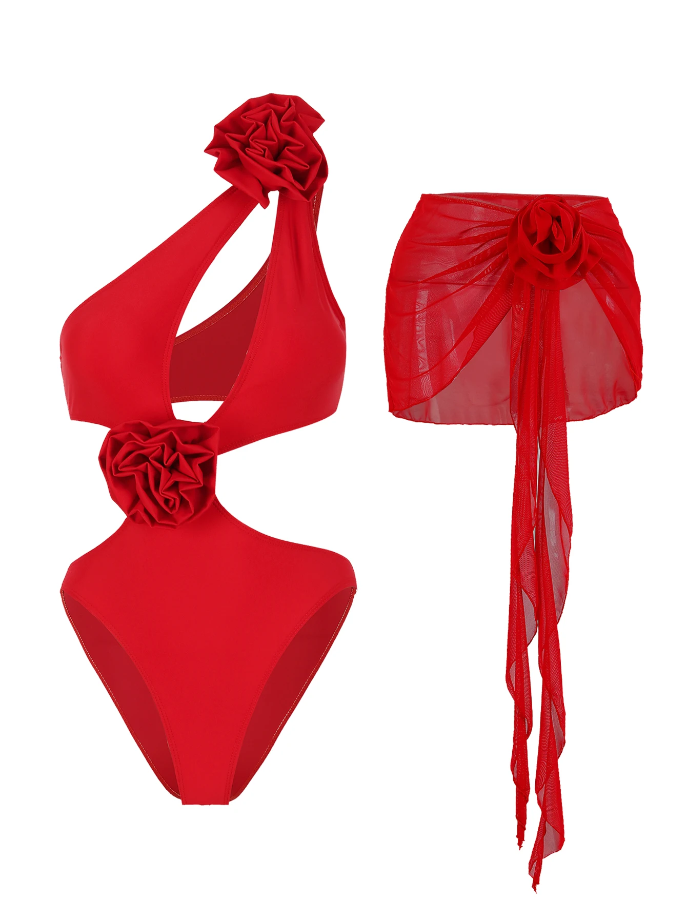 Flower Swimwear Female Red&White Cut Out Swim Suit