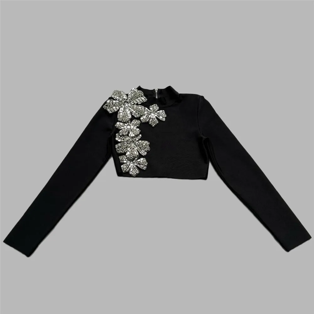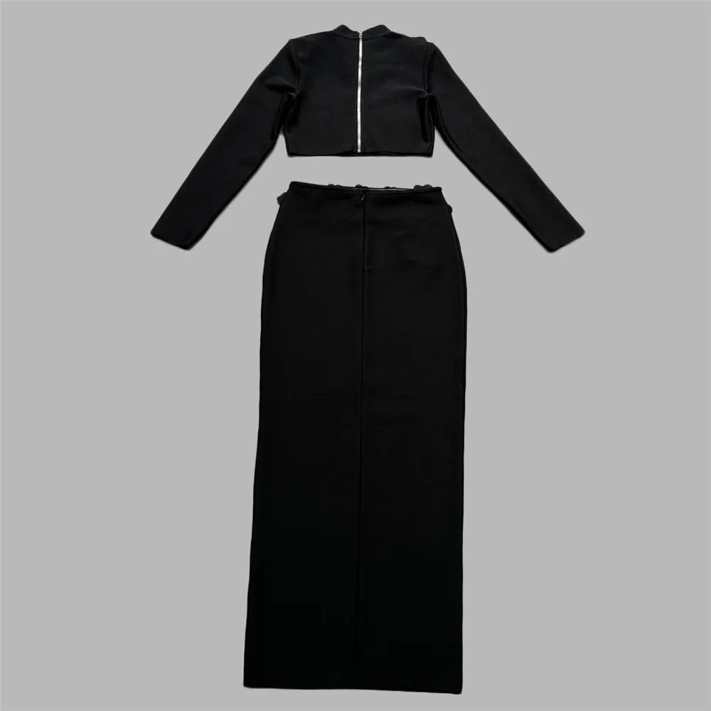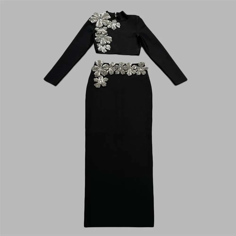 Women Two Pieces Sets Diamonds Long Sleeve Tops Skirts
