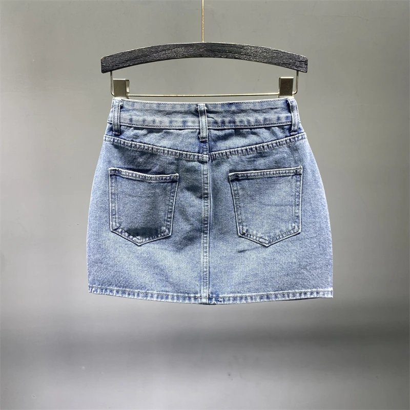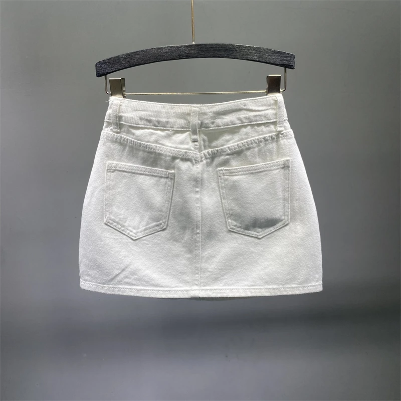 This skirt is made of POLYESTER and denim material and has a casual style. It has slight stretch It is suitable for the Spring/Summer season. There are no hign-concerned chemicals used in its production and the waistline is natural. The skirt features a solid pattern and has a regular fit with an A-line silhouette. Its length is above the knee, making it a mini skirt. It is suitable for all women and is available in black, white, pink and light blue colors. The skirt has a hip skirt design.