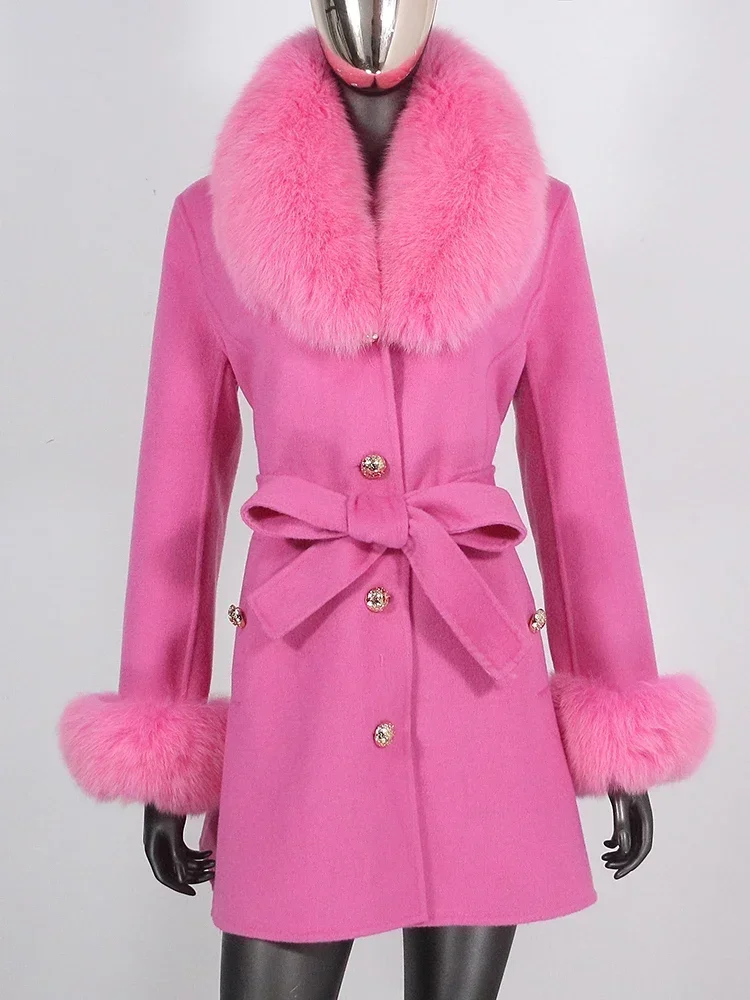 Material :90% wool +10% cashmere wool Blends + natural fox fur fur collar