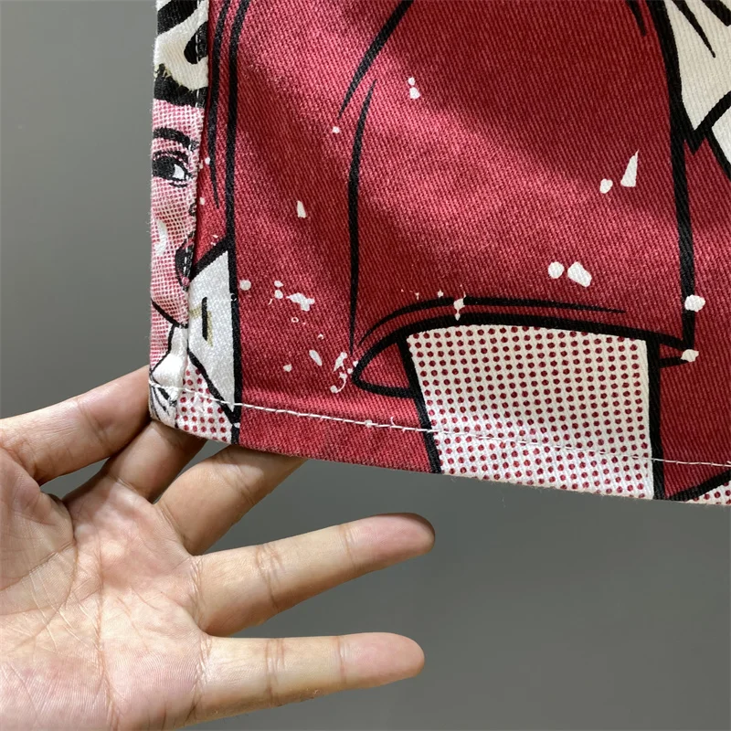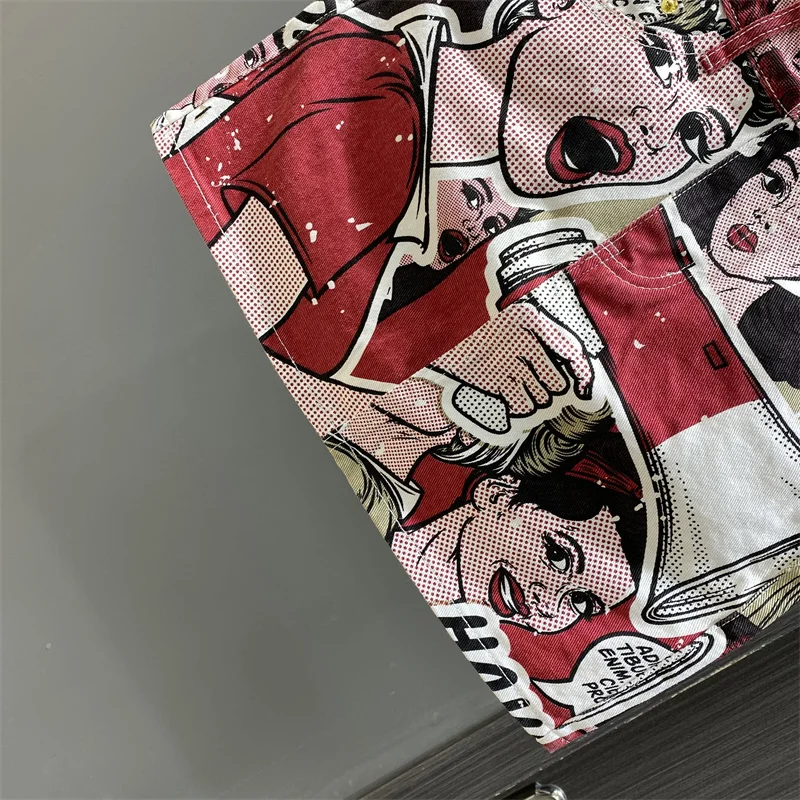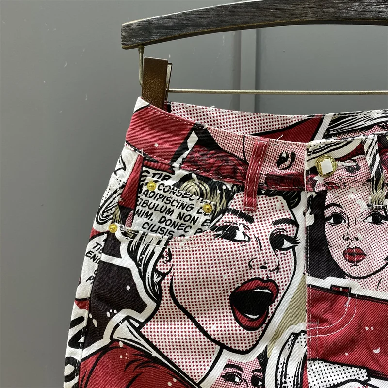 This High Waist Denim Skirt features a slim fitting silhouette with slight stretch fabric. The fabric is a blend that does not contain any high-concern chemicals, making it suitable for all seasons. The waistline is empire-style and the pattern is a playful print. Crafted with expert weaving techniques, this skirt is decorated with patchwork details and falls at an above-the-knee length. Perfect for those in the middle age group, this skirt is a stylish and versatile addition to any wardrobe.