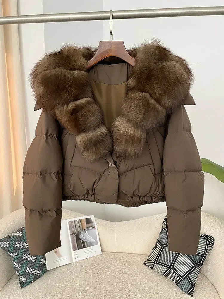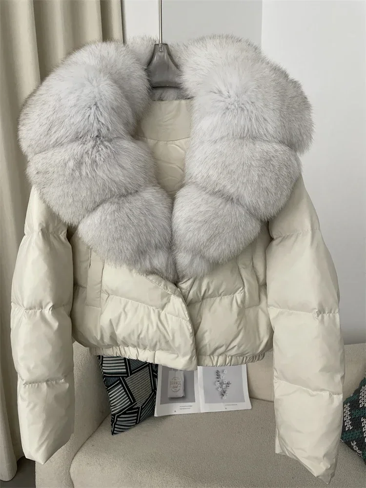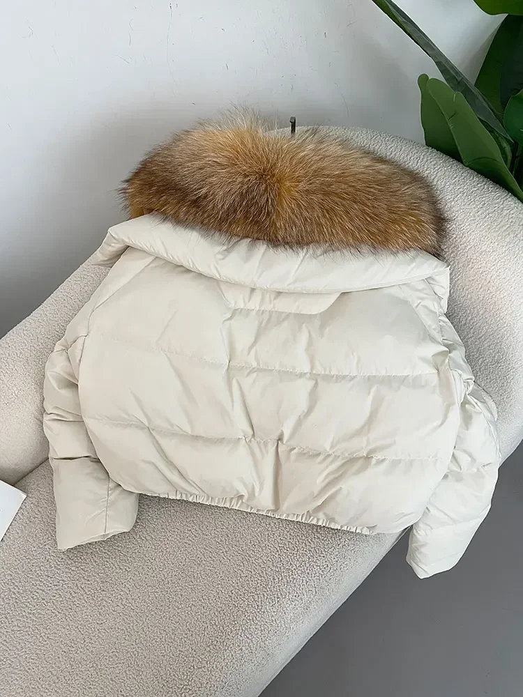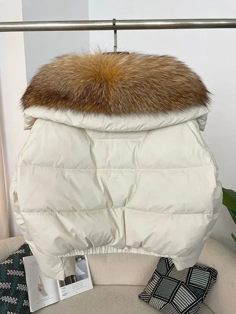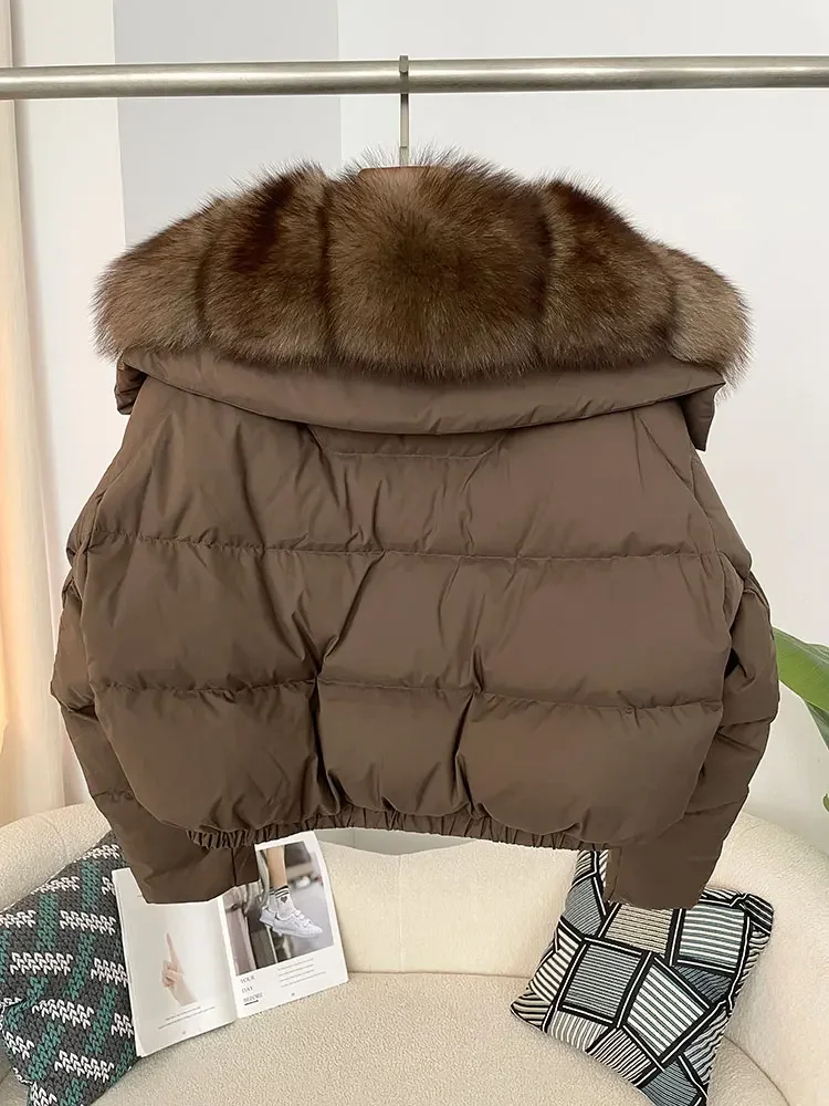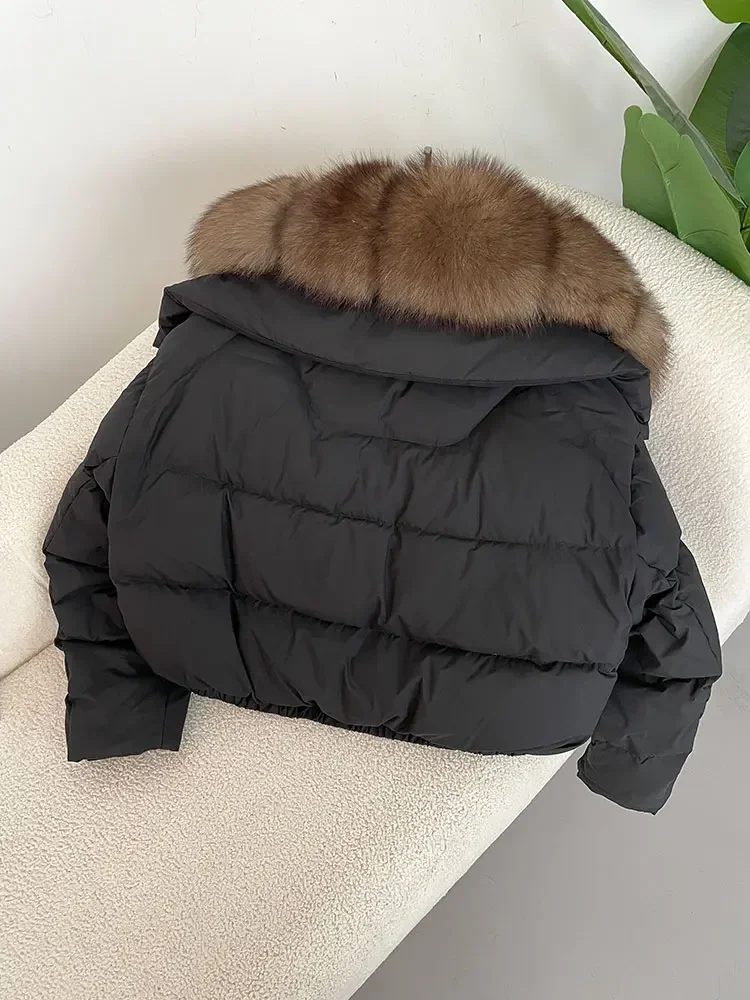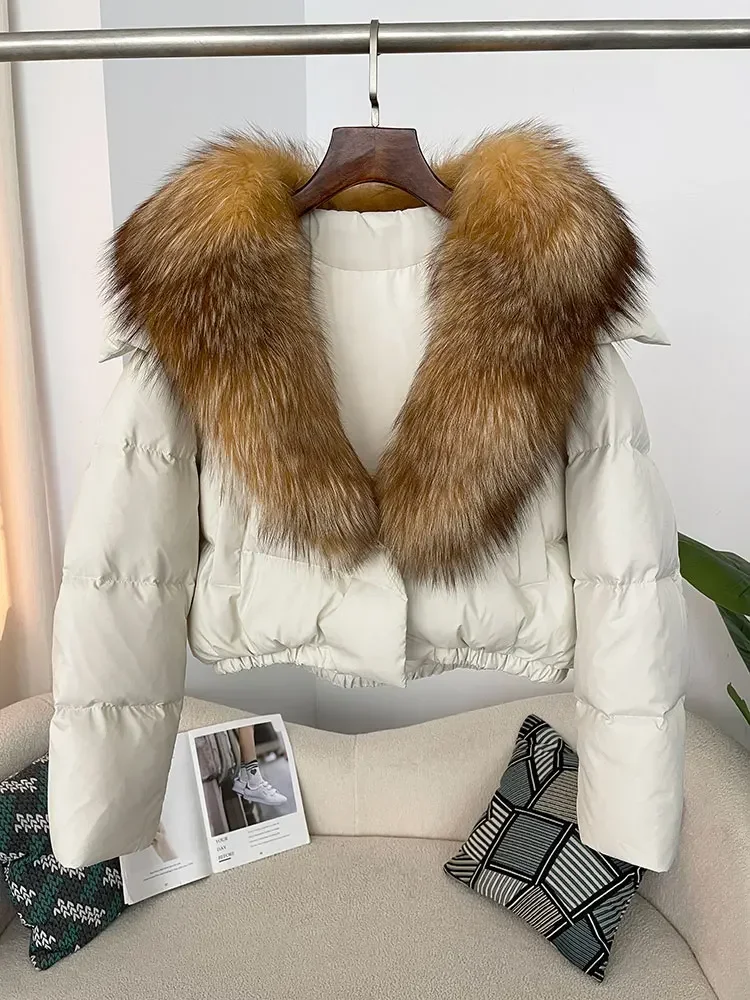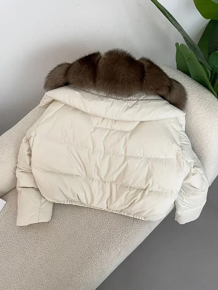 cropped duck down winter coat with real fox fur