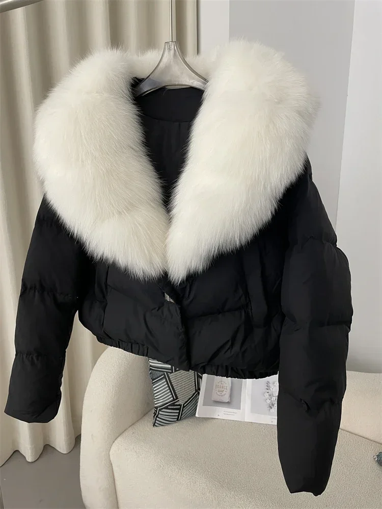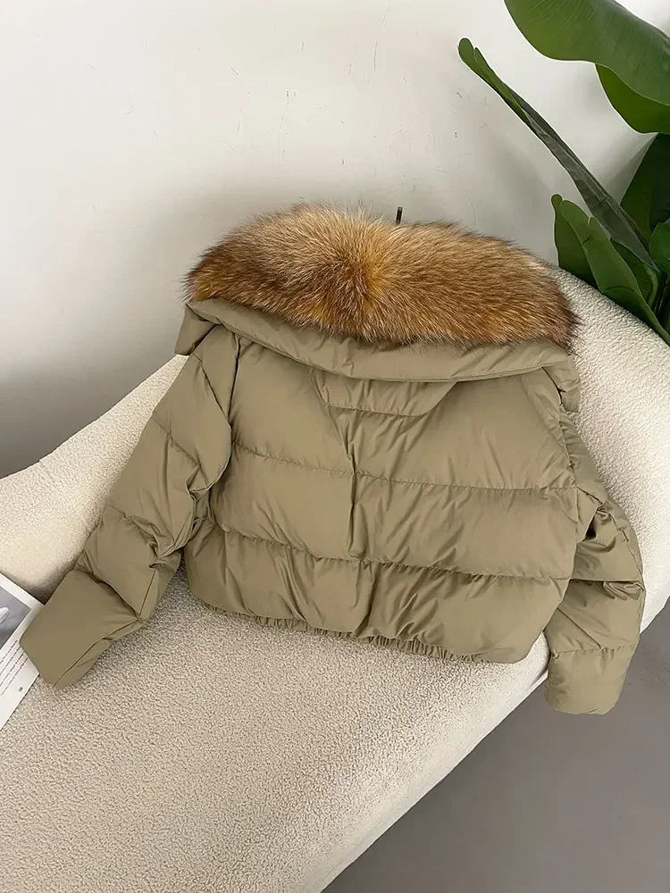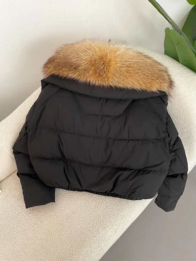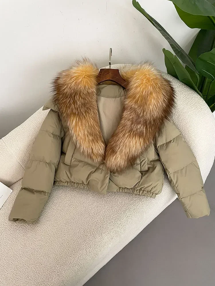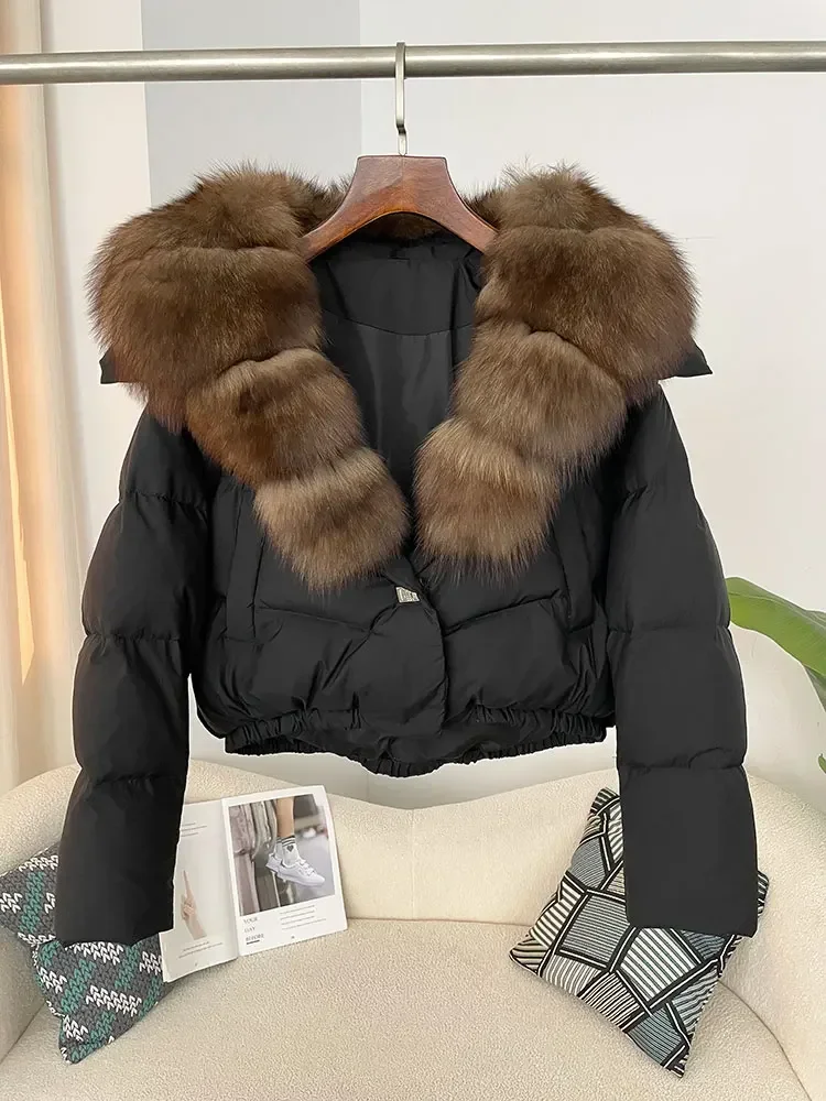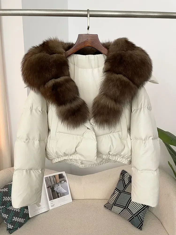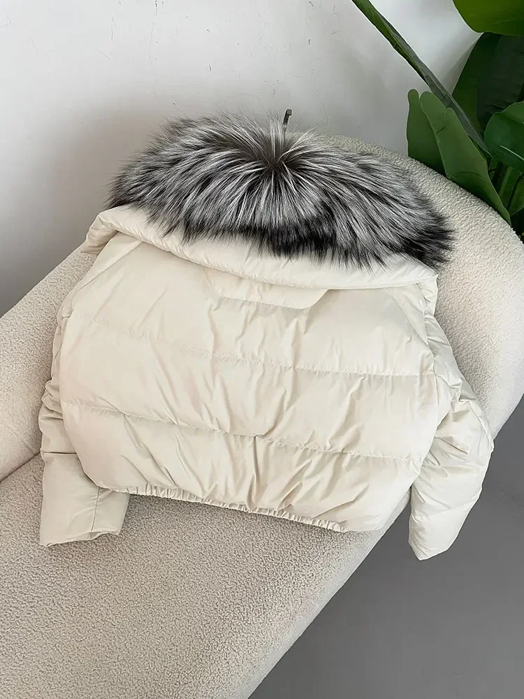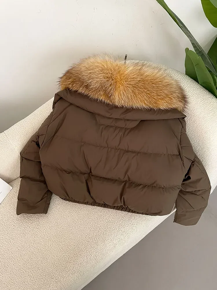 cropped duck down winter coat with real fox fur