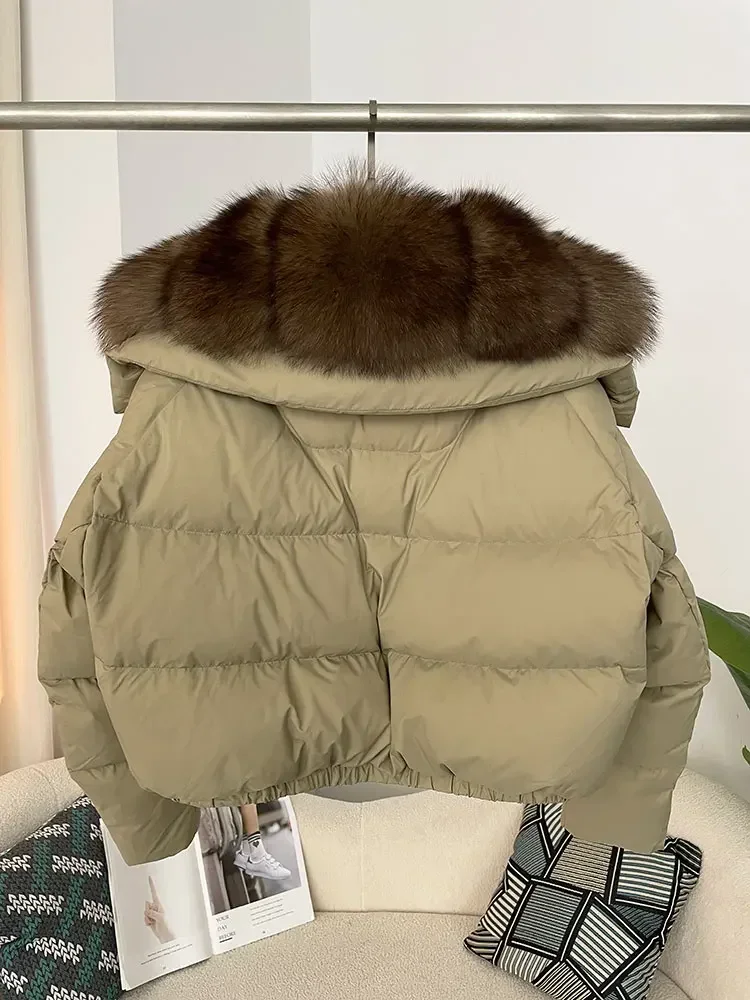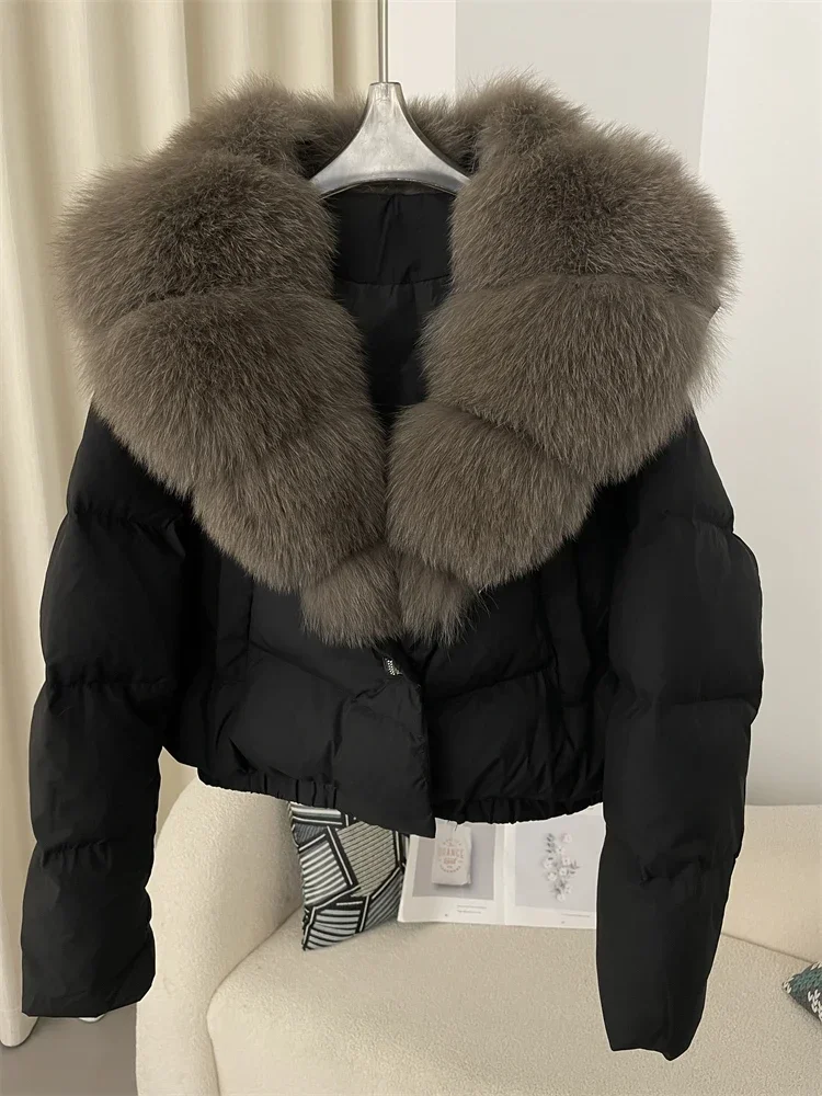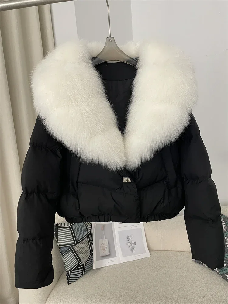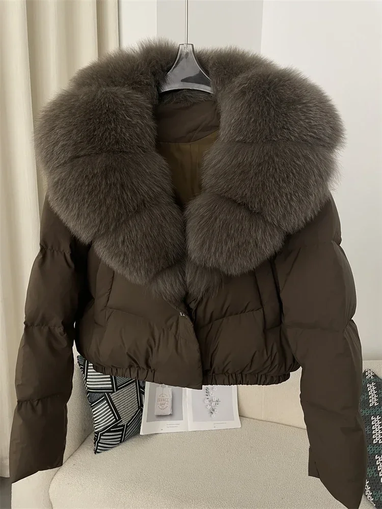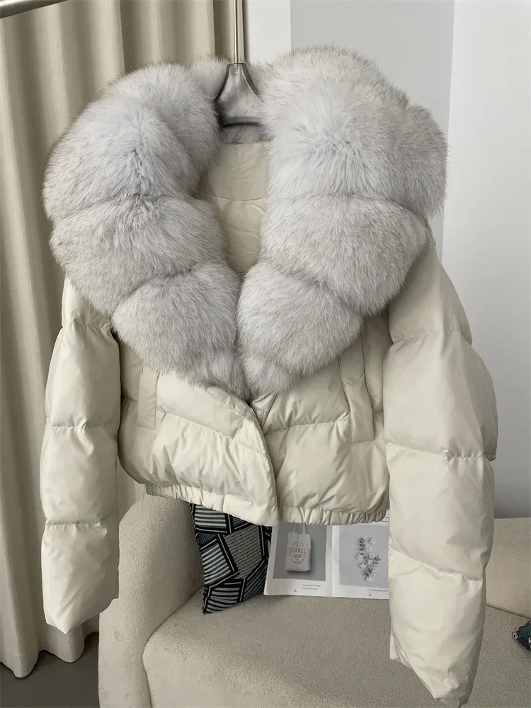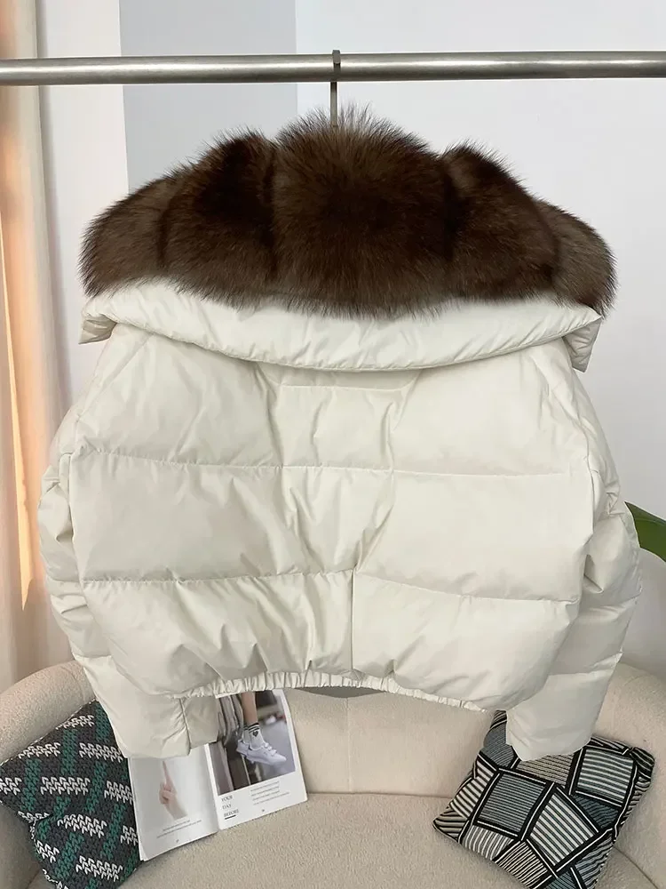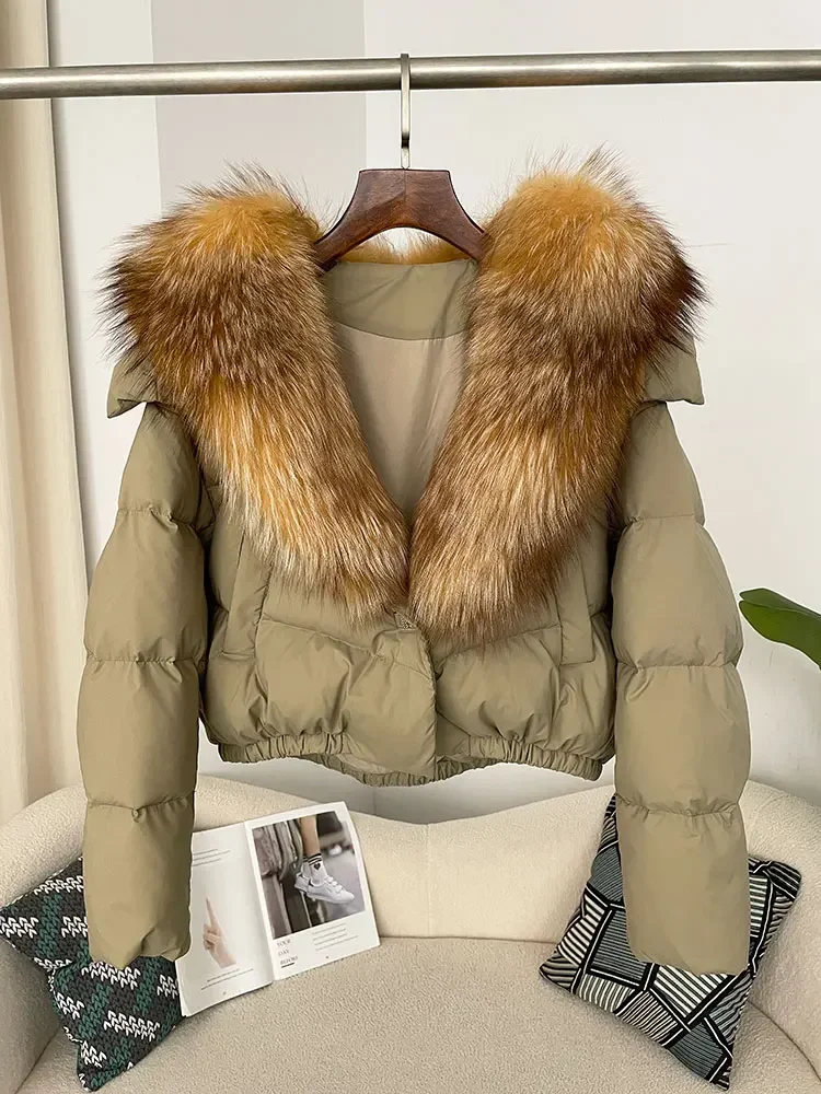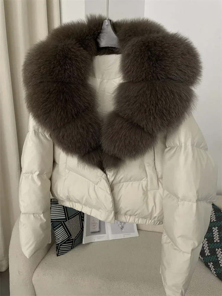 cropped duck down winter coat with real fox fur