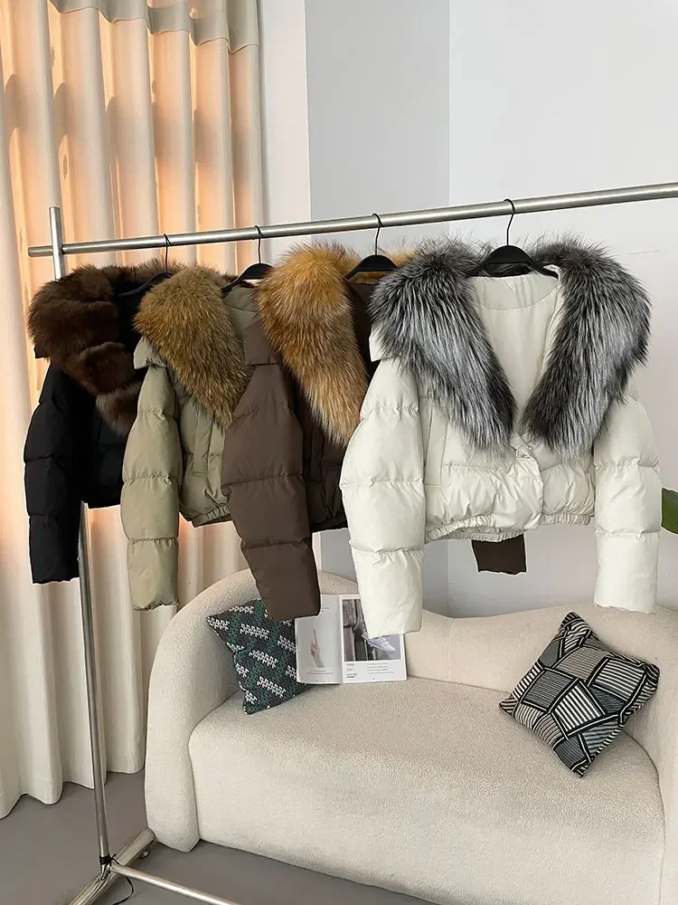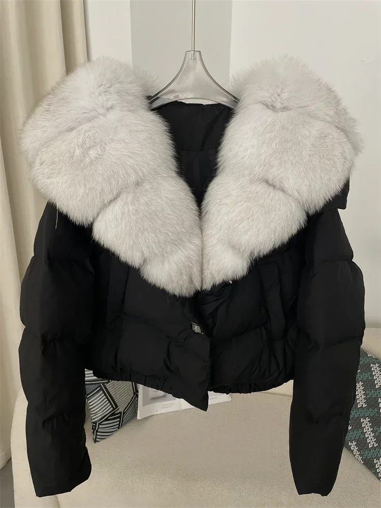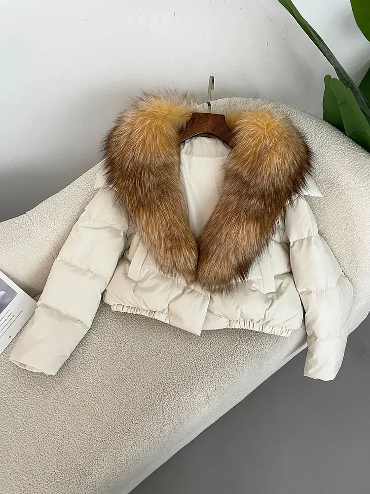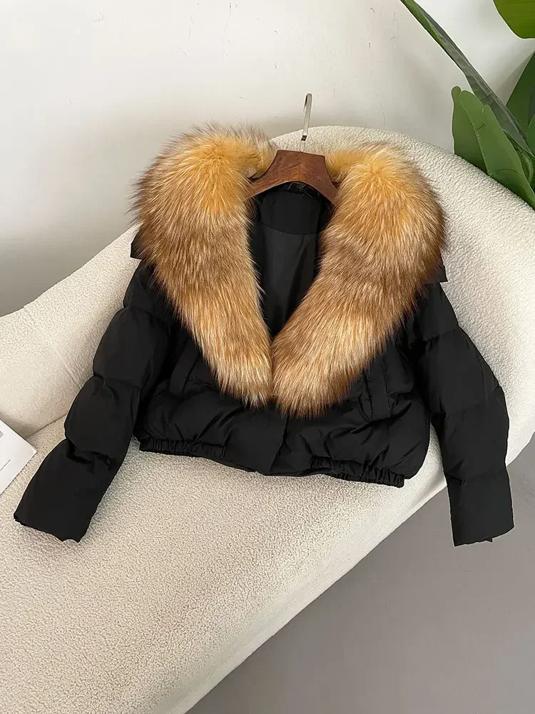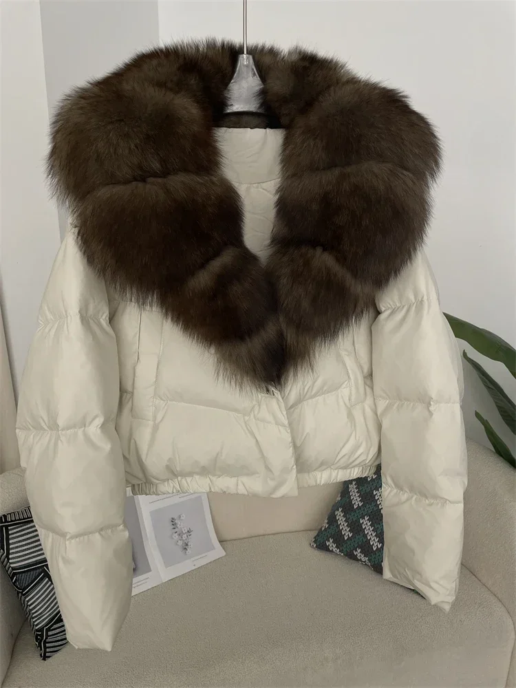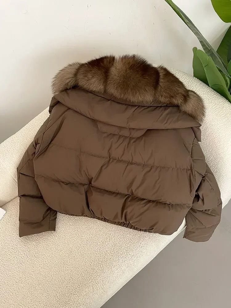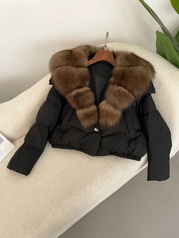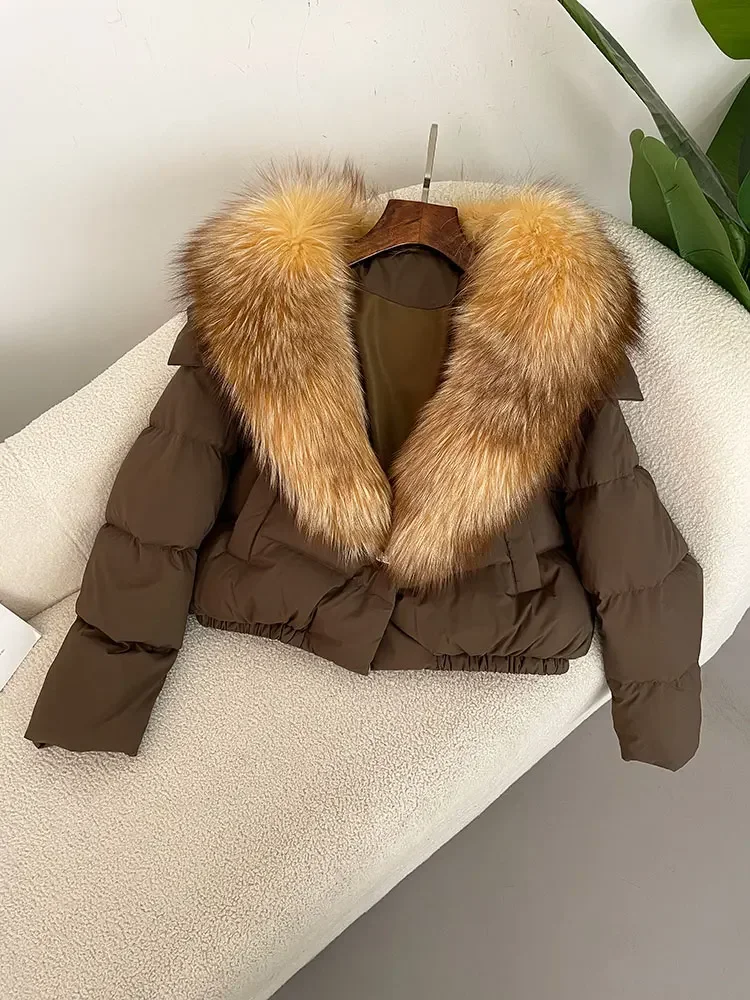 cropped duck down winter coat with real fox fur