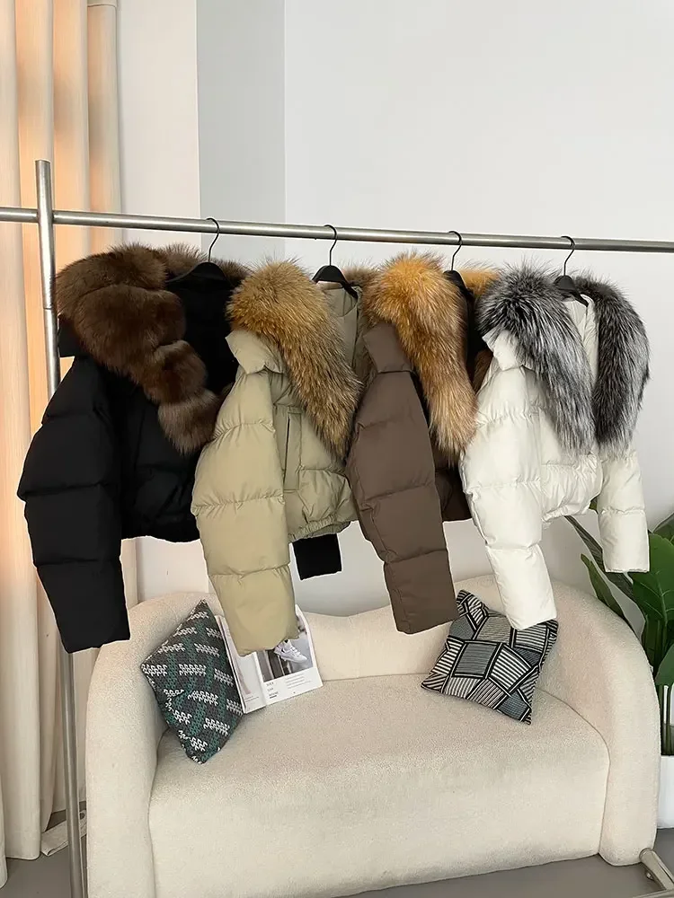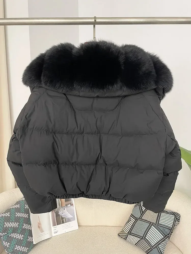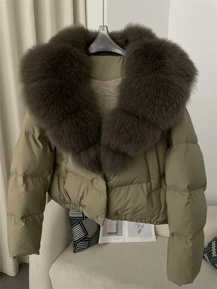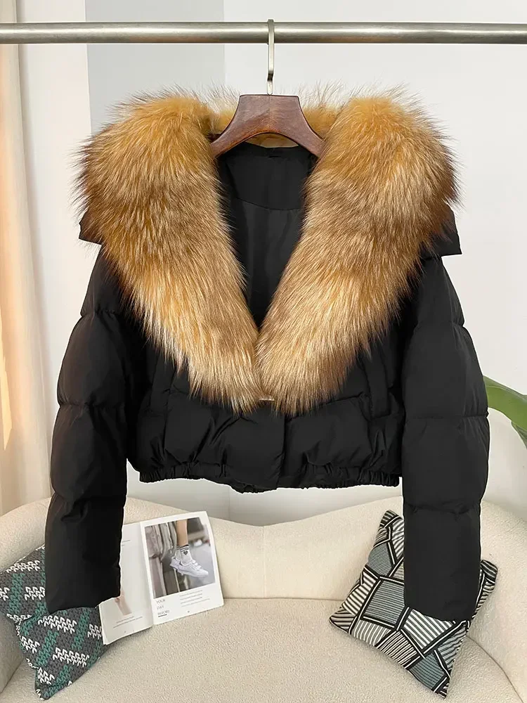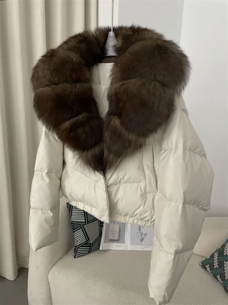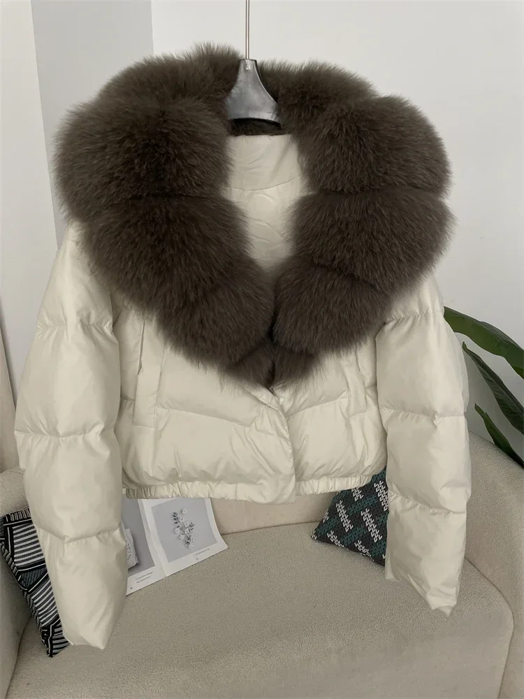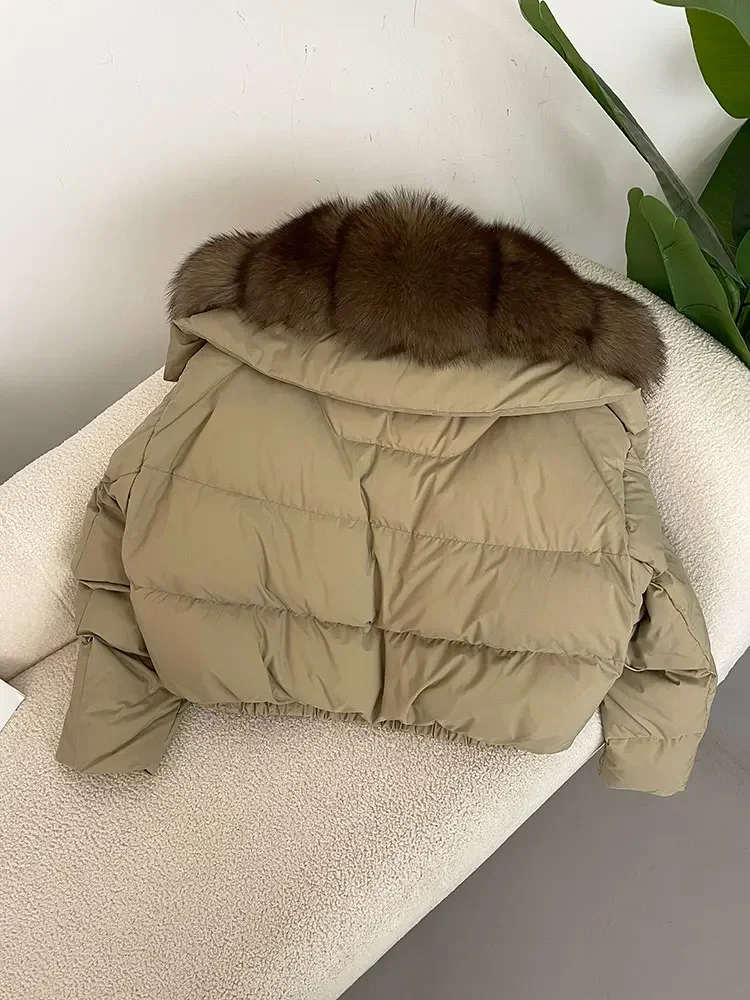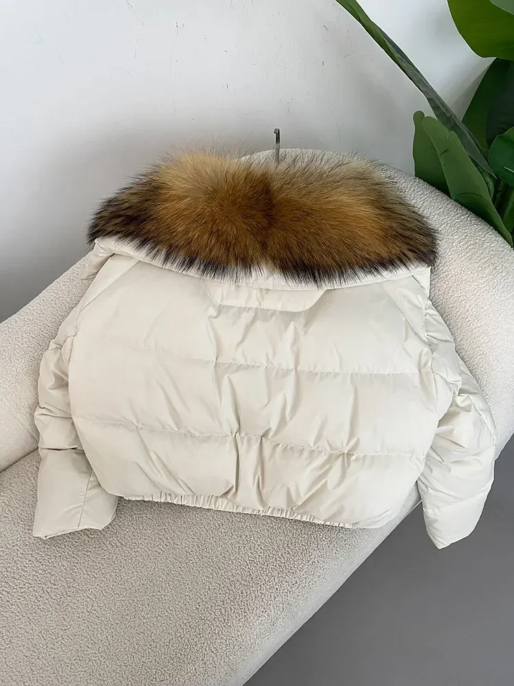 cropped duck down winter coat with real fox fur