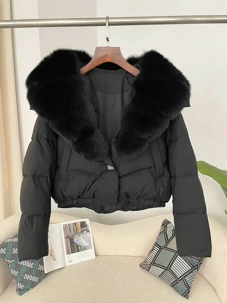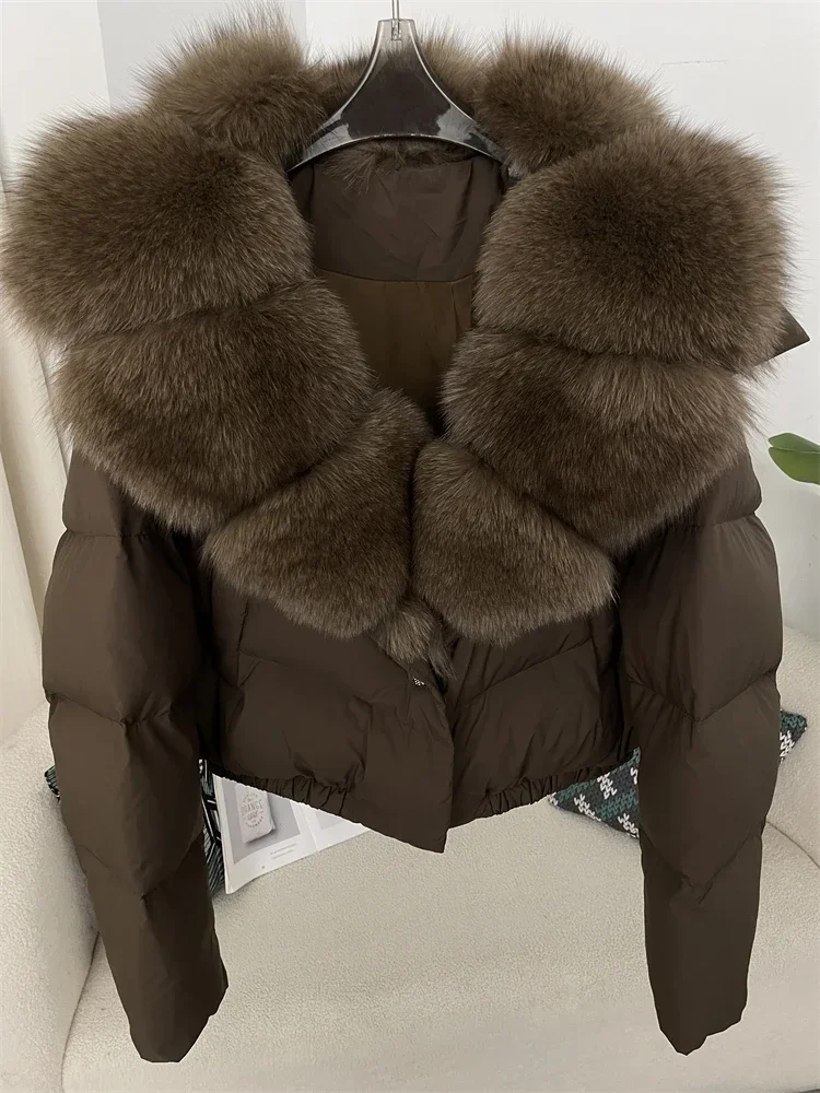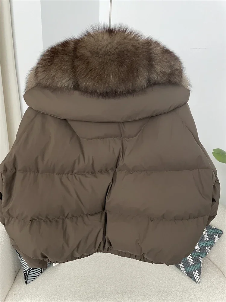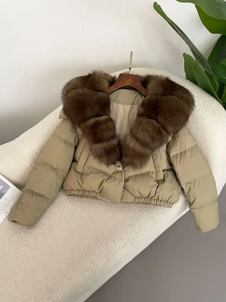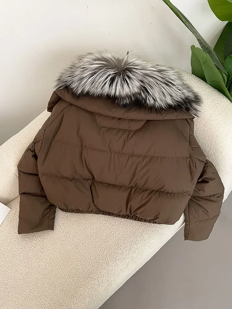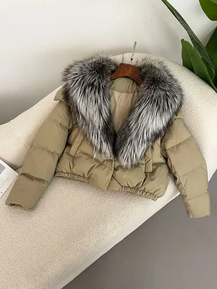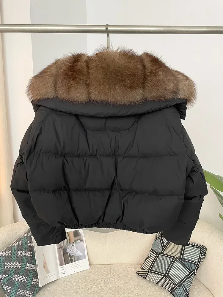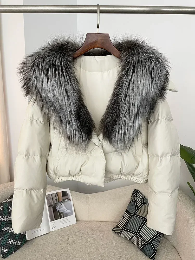 cropped duck down winter coat with real fox fur