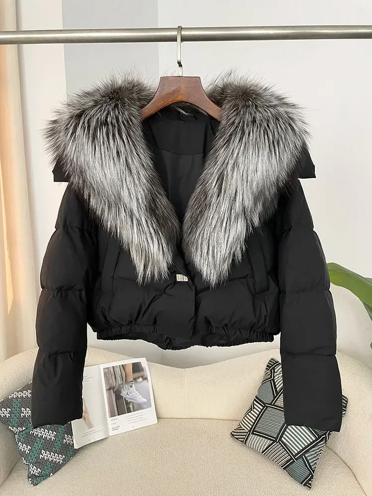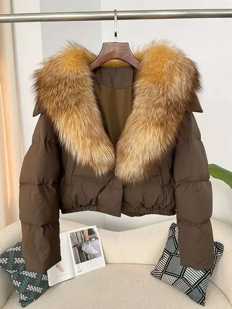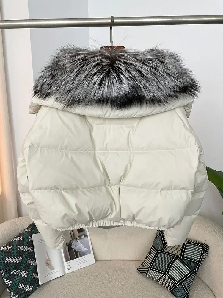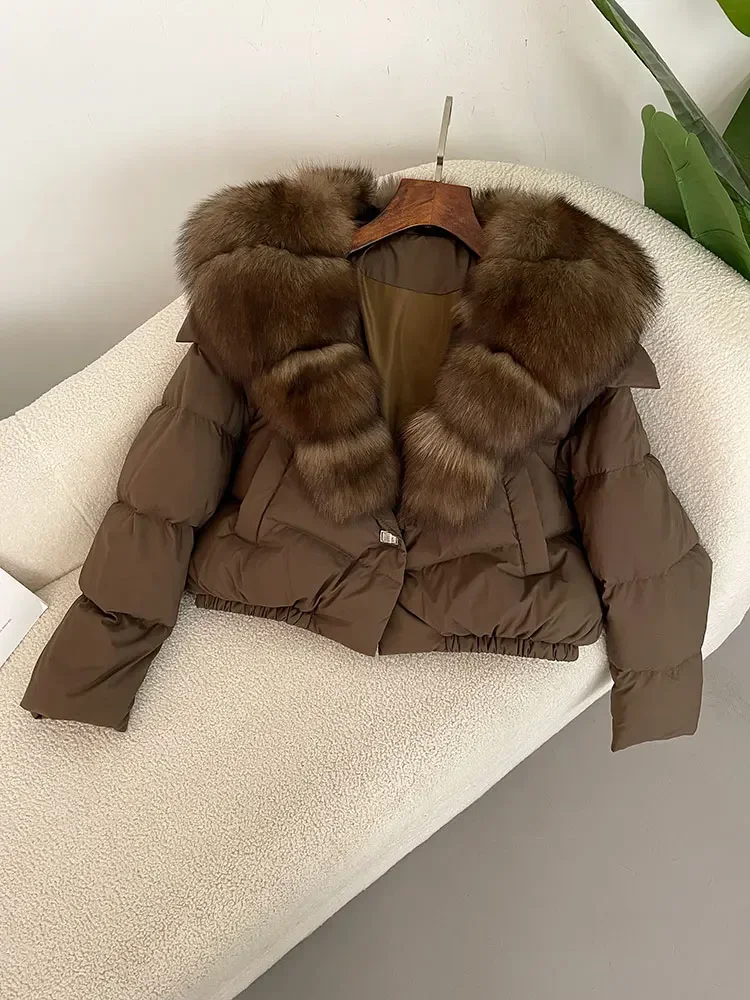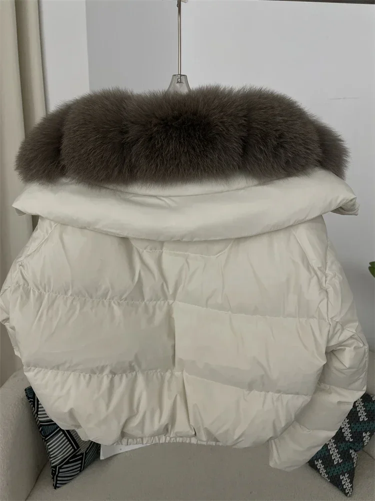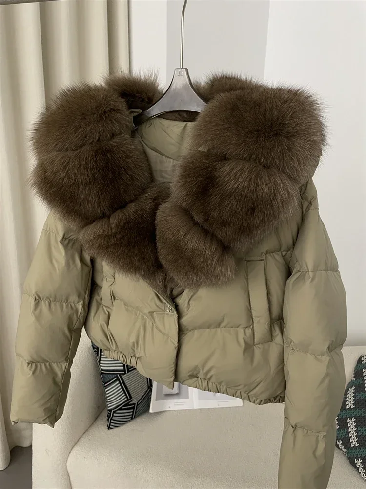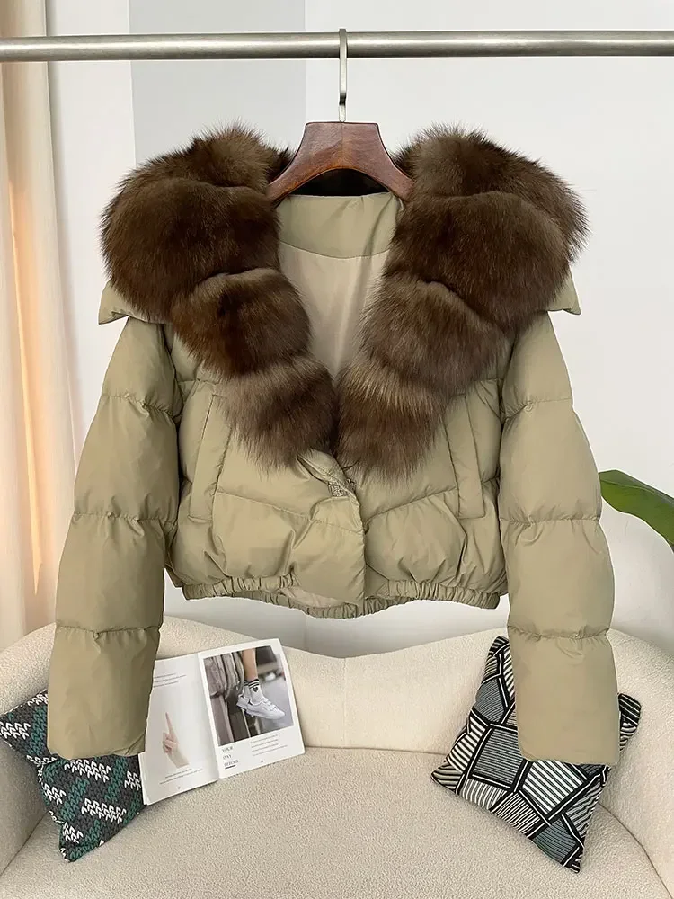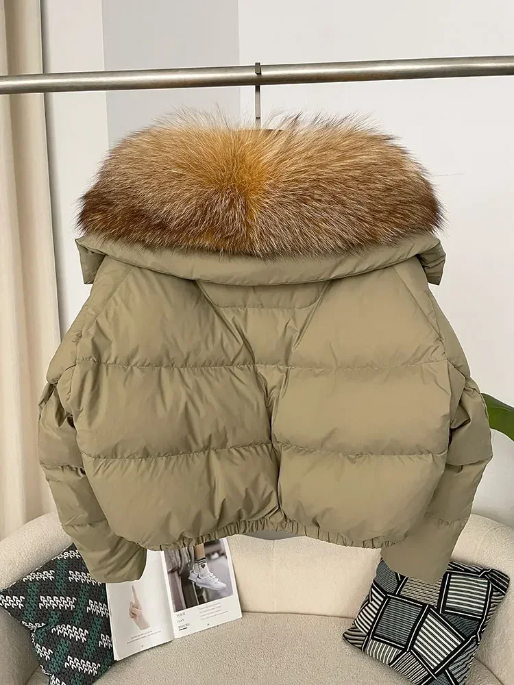 cropped duck down winter coat with real fox fur
