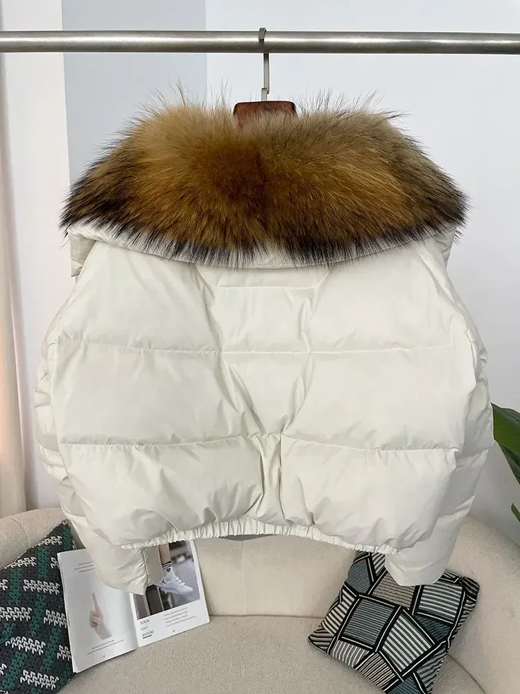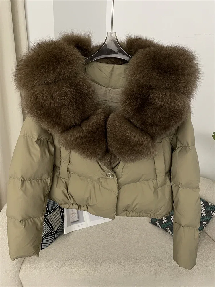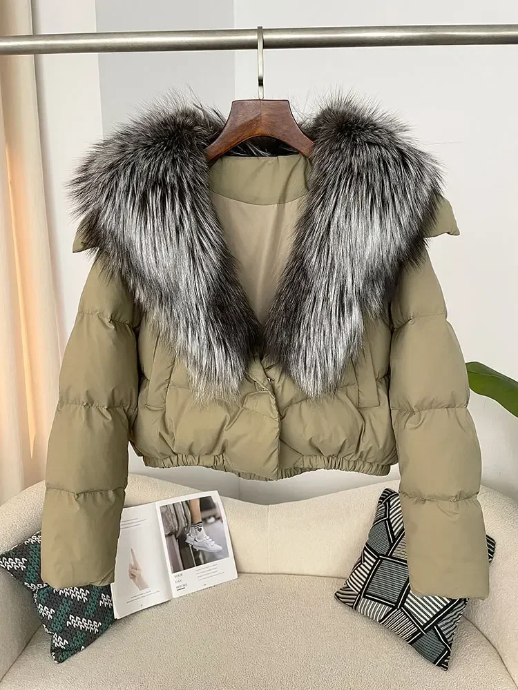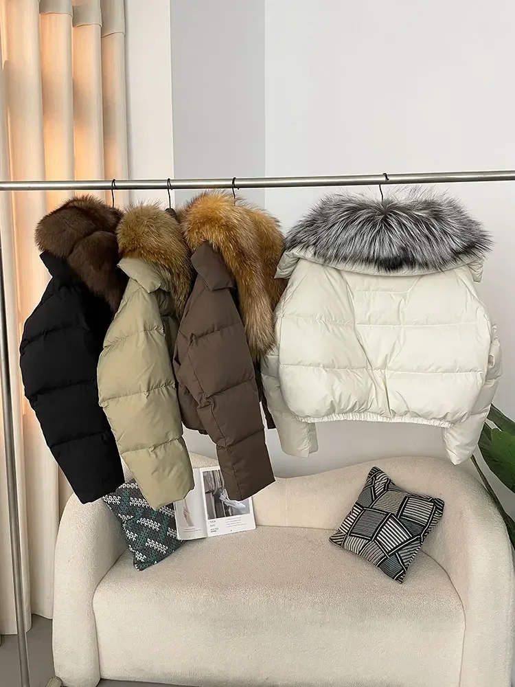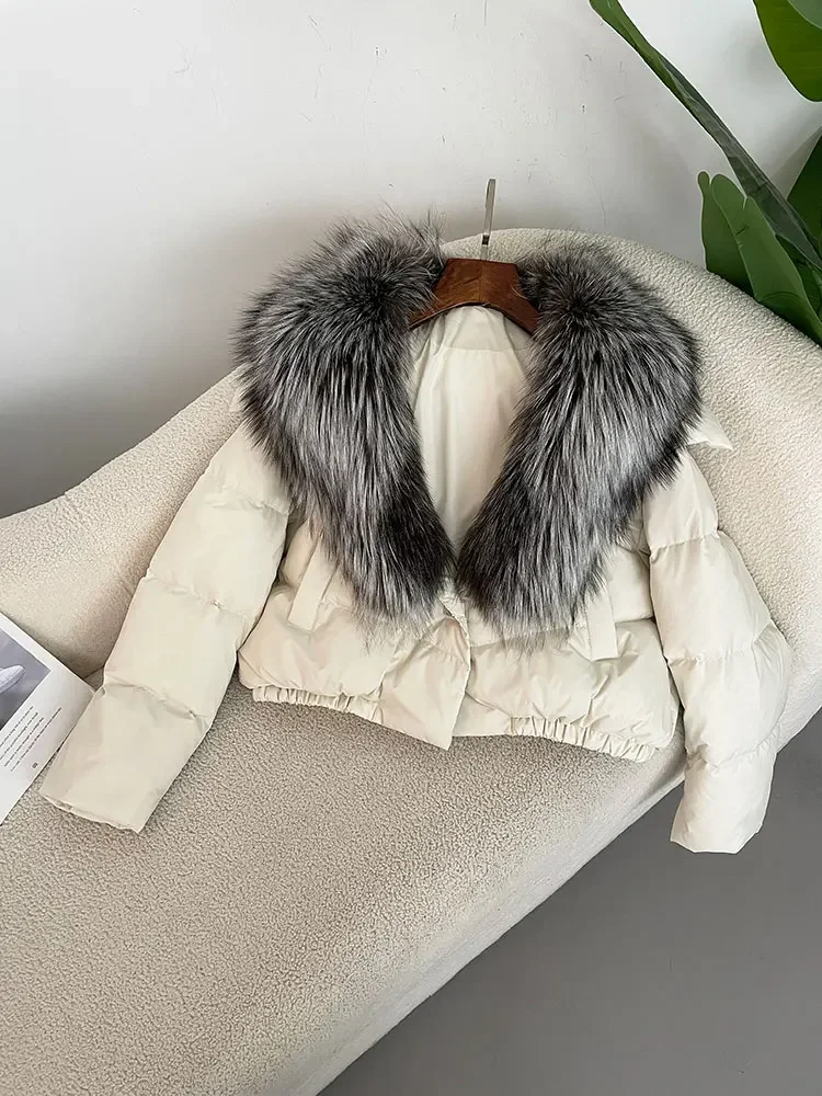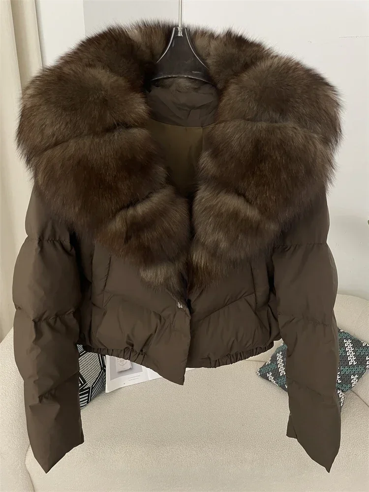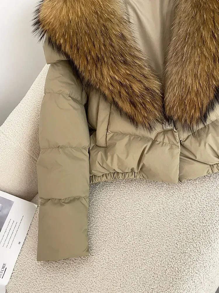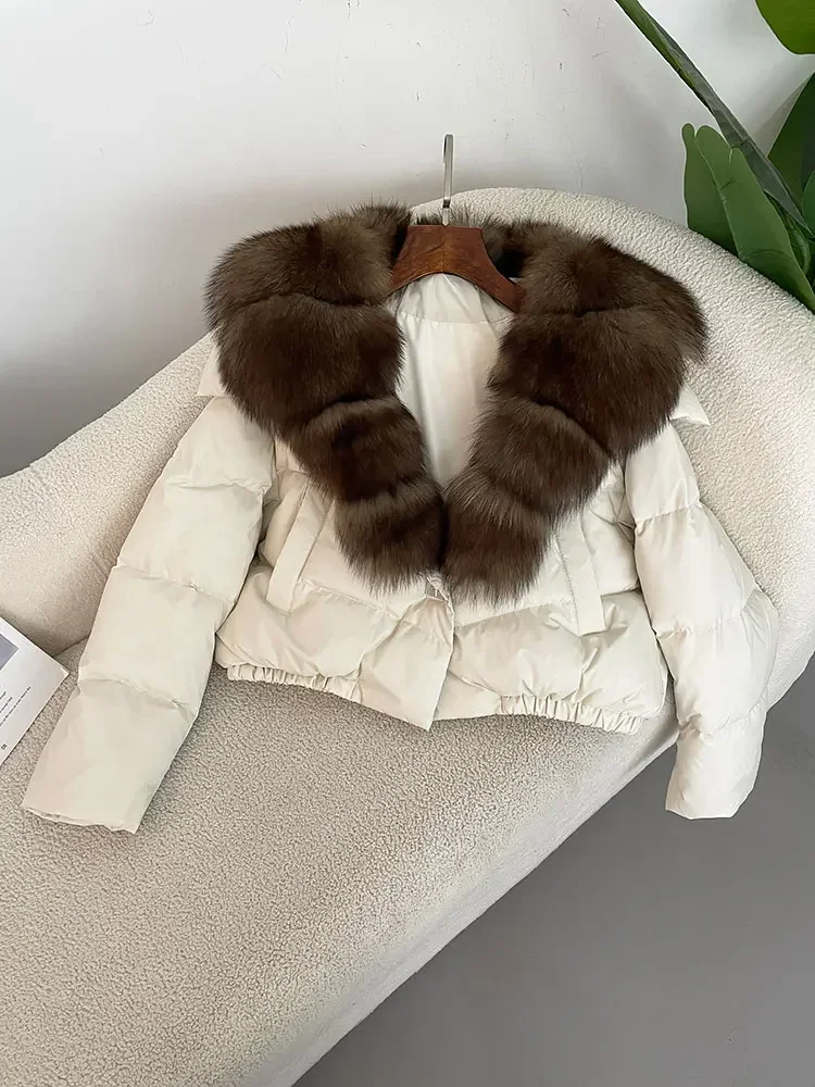 cropped duck down winter coat with real fox fur