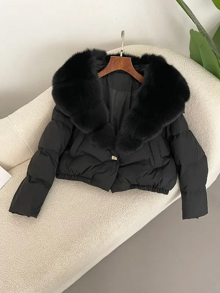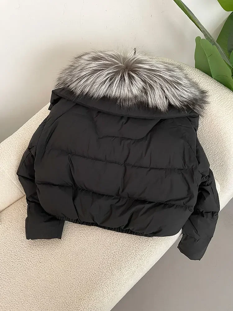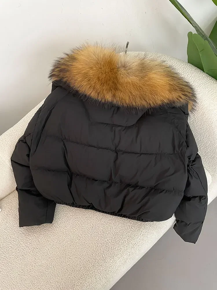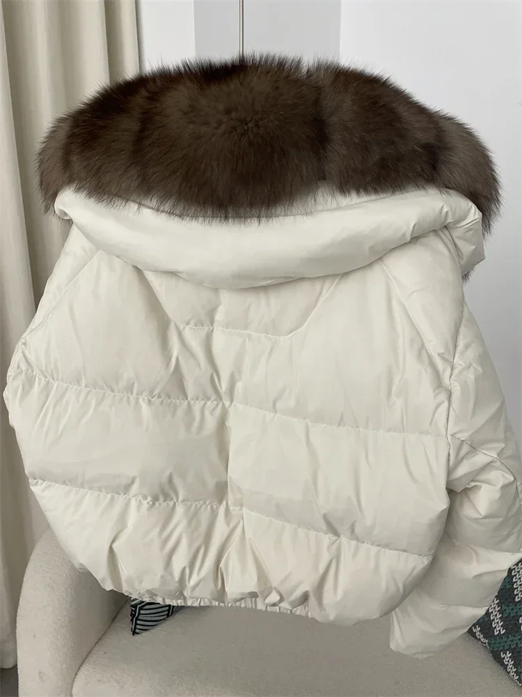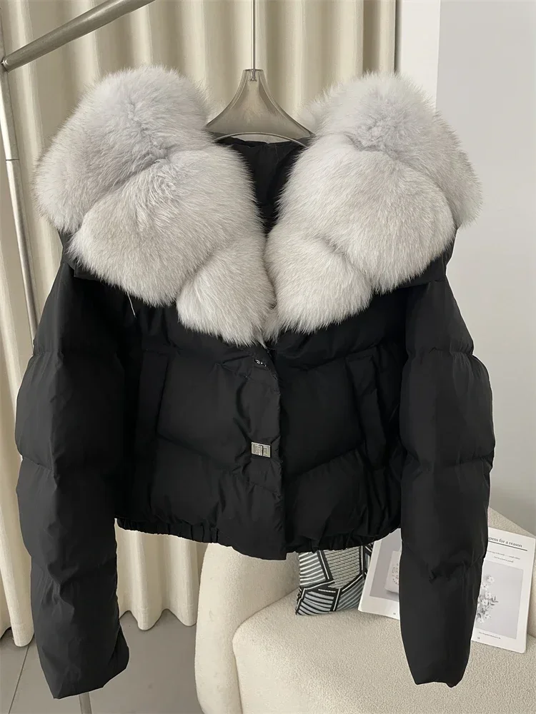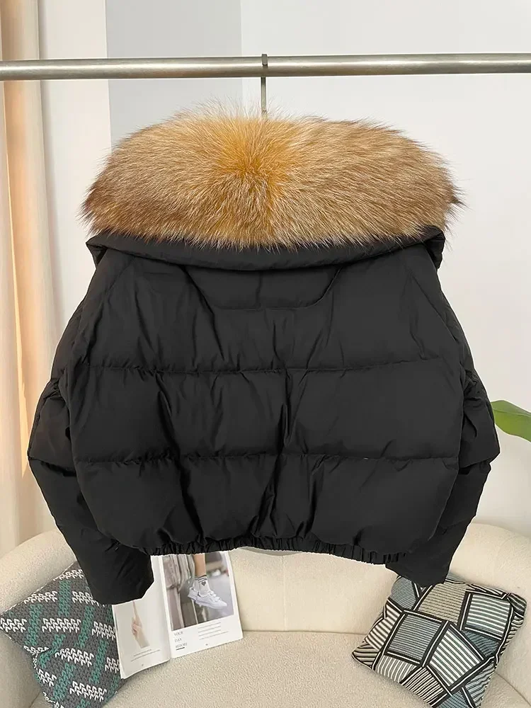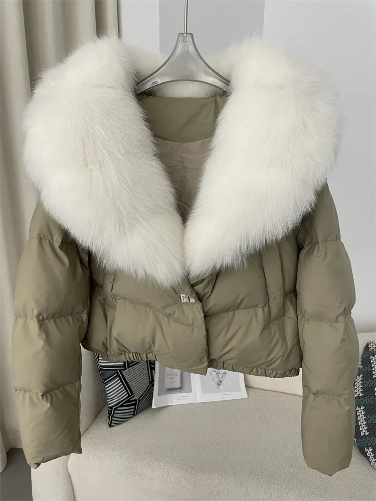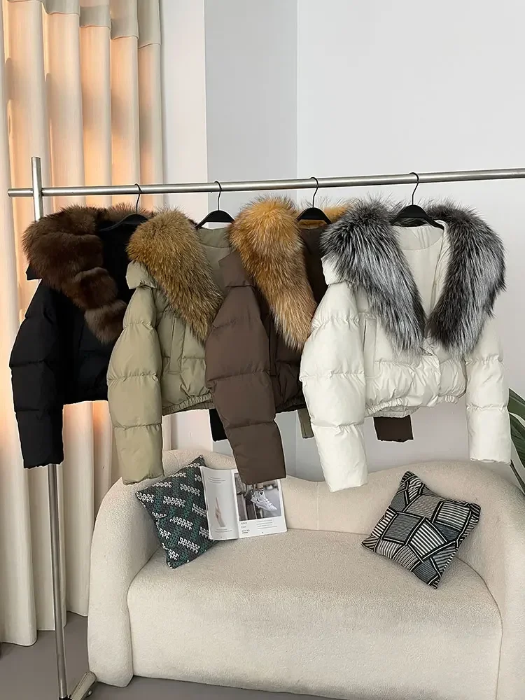 cropped duck down winter coat with real fox fur