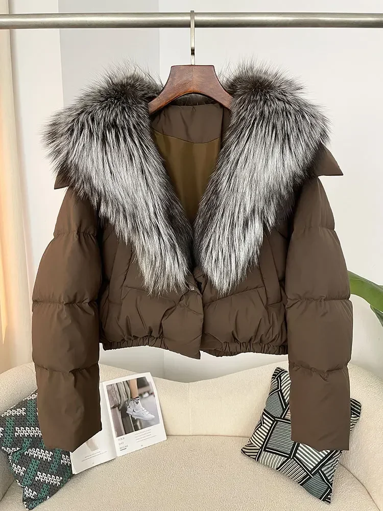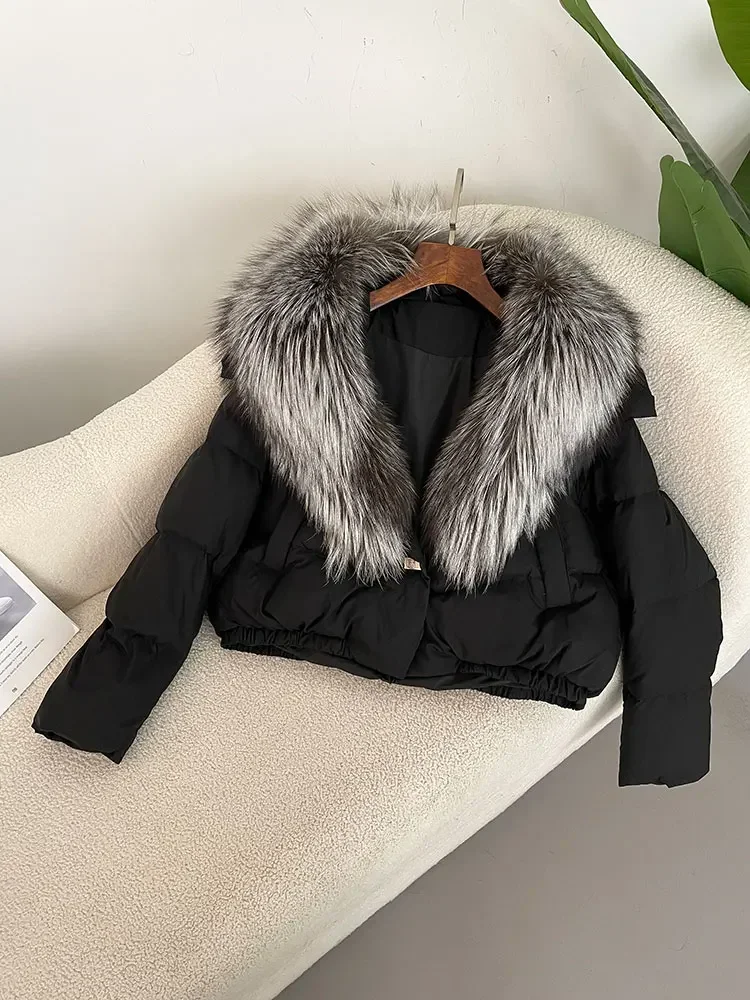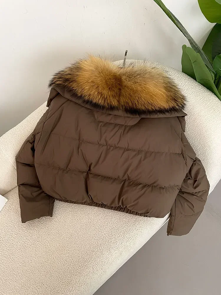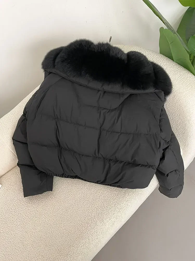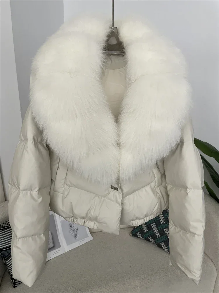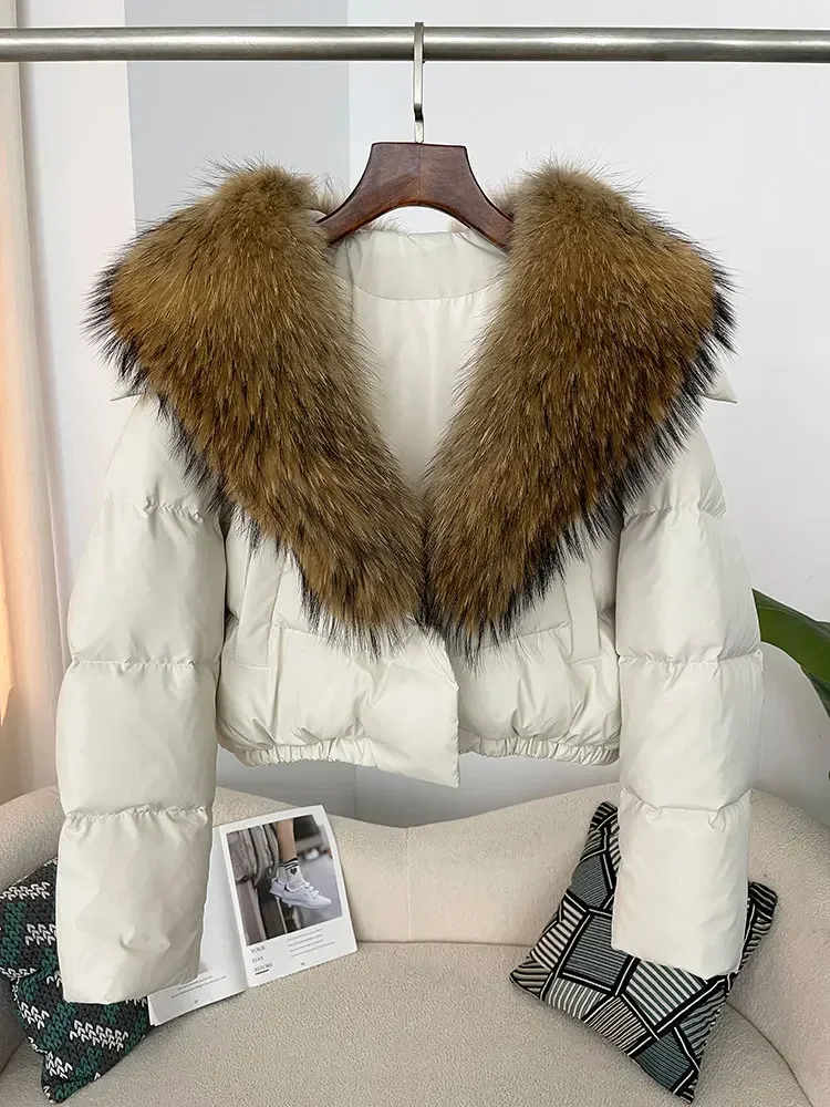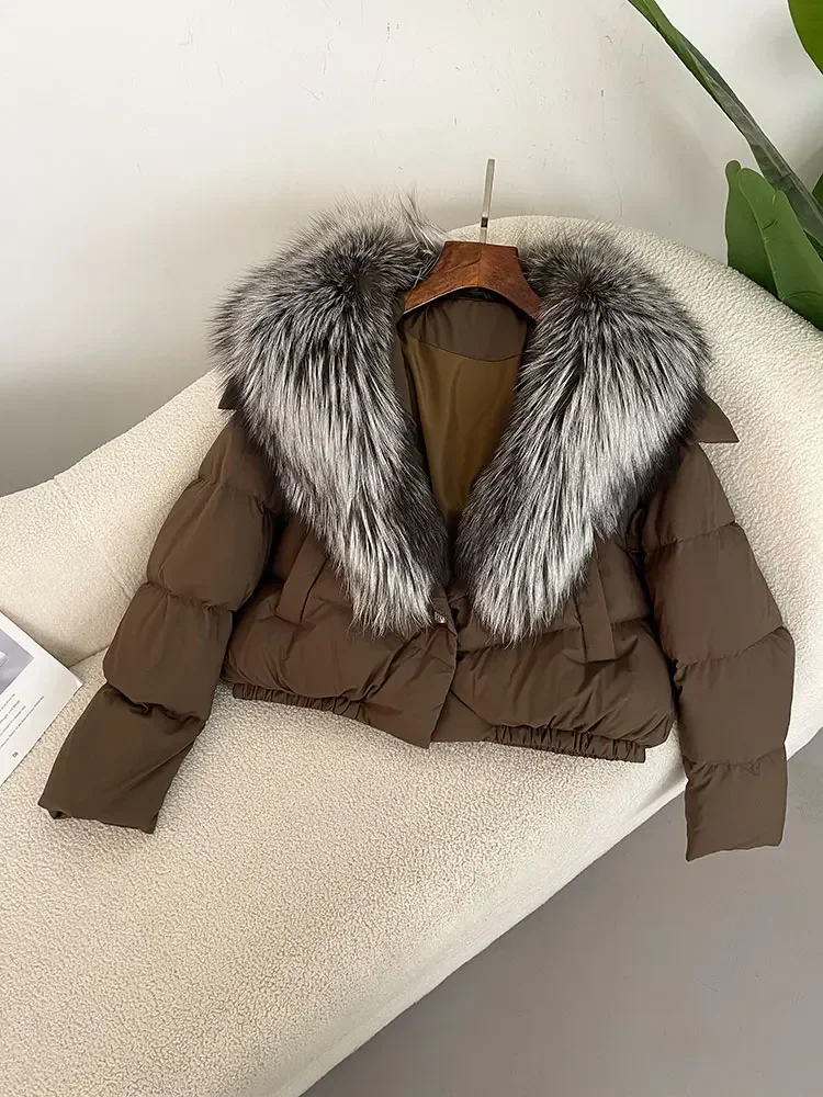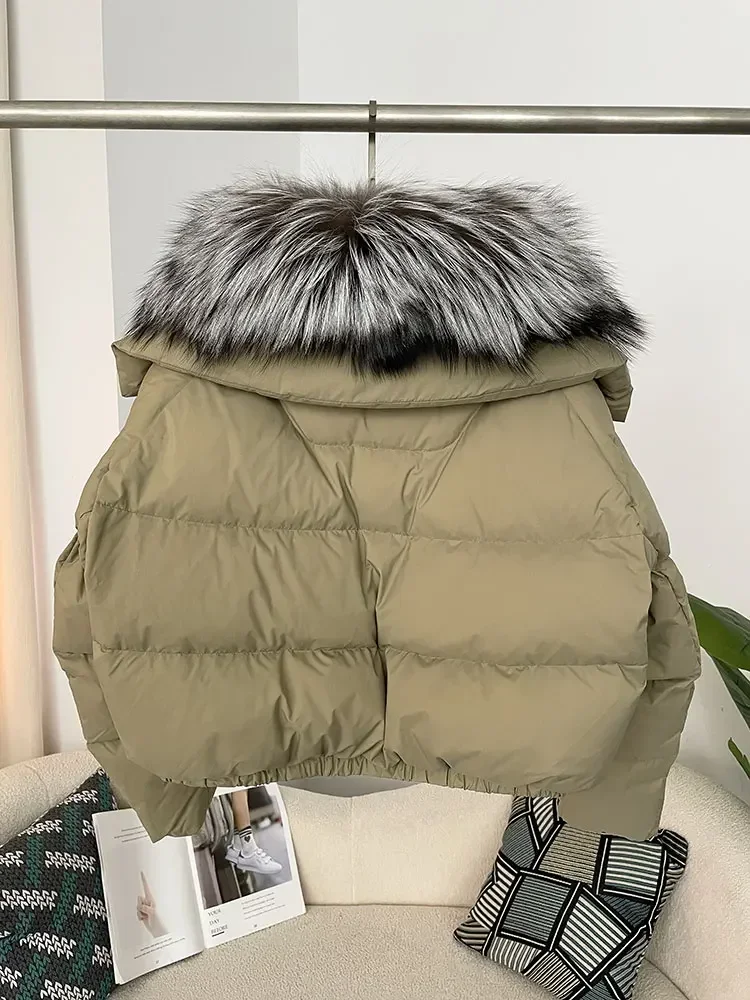 cropped duck down winter coat with real fox fur