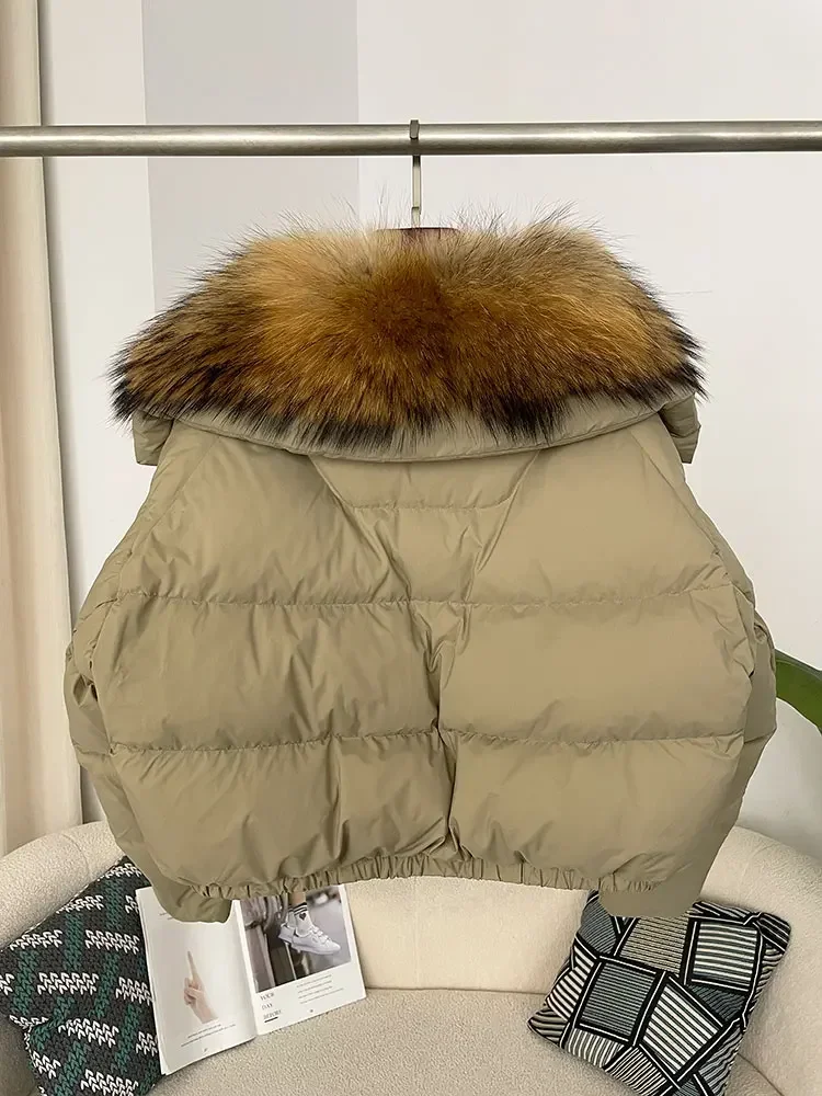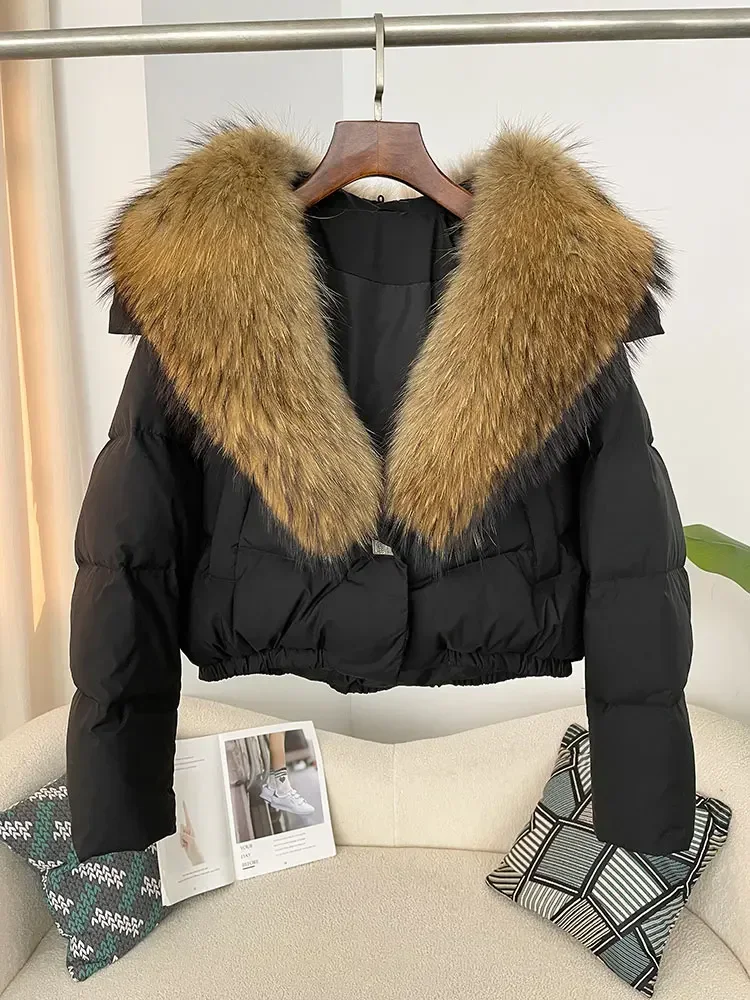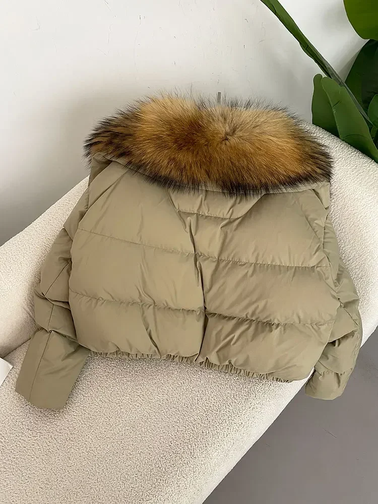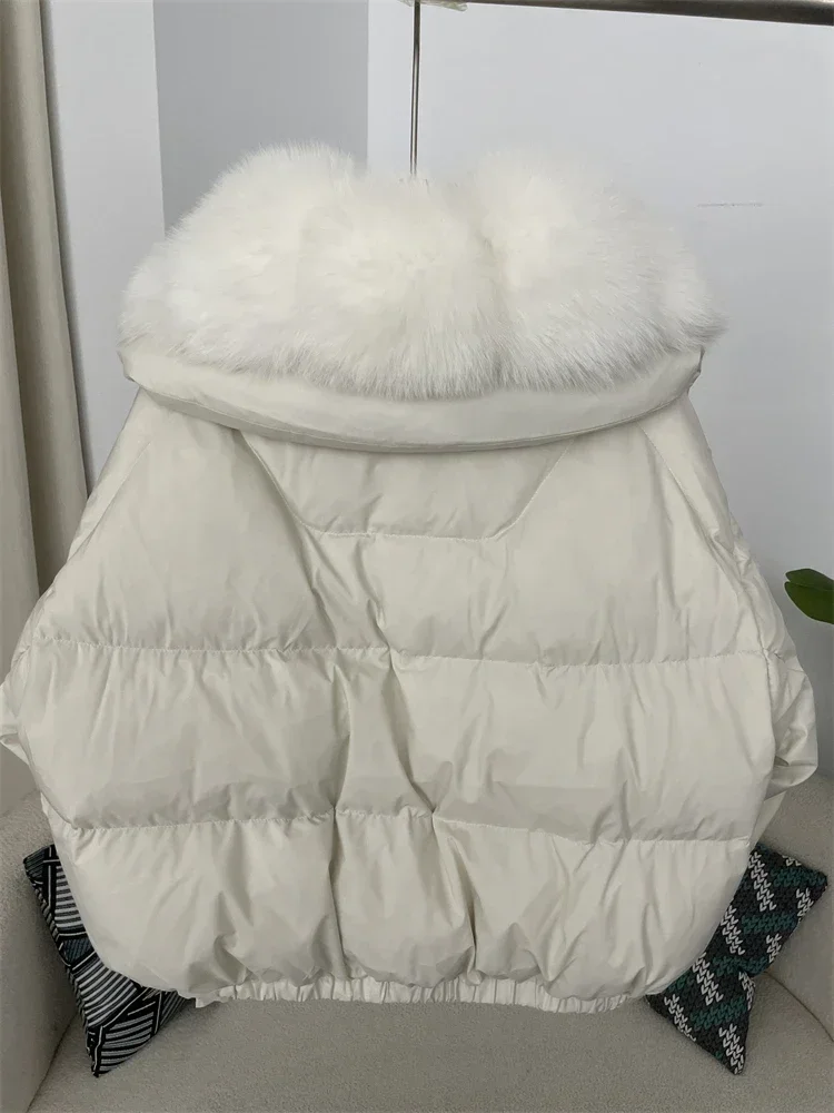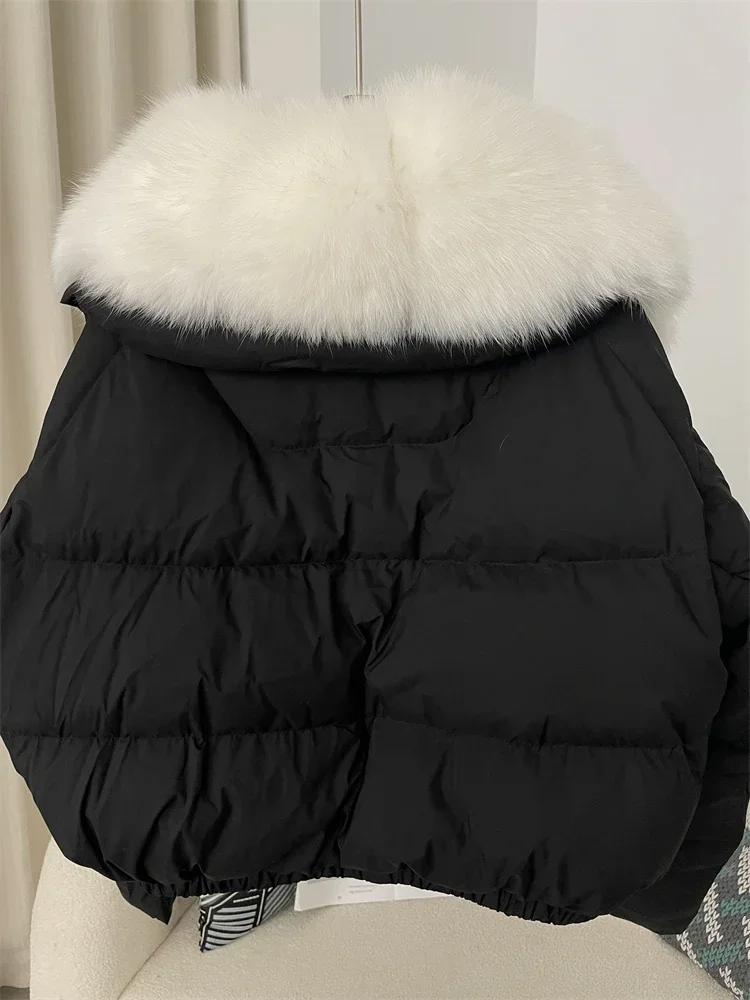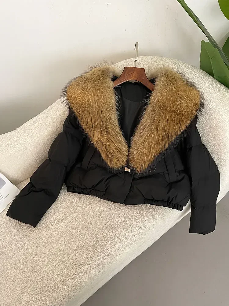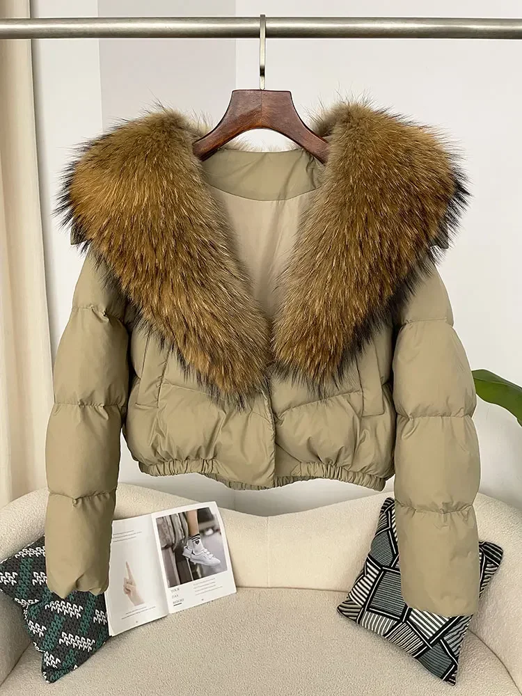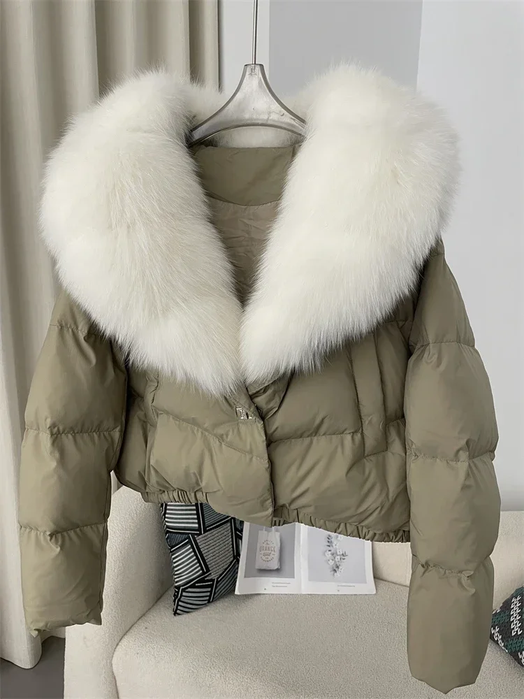 cropped duck down winter coat with real fox fur