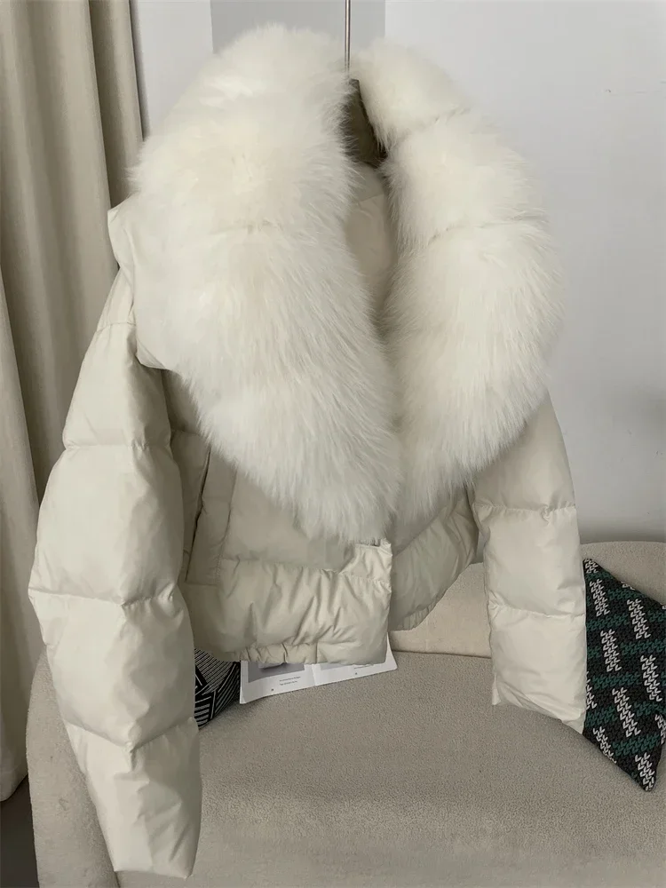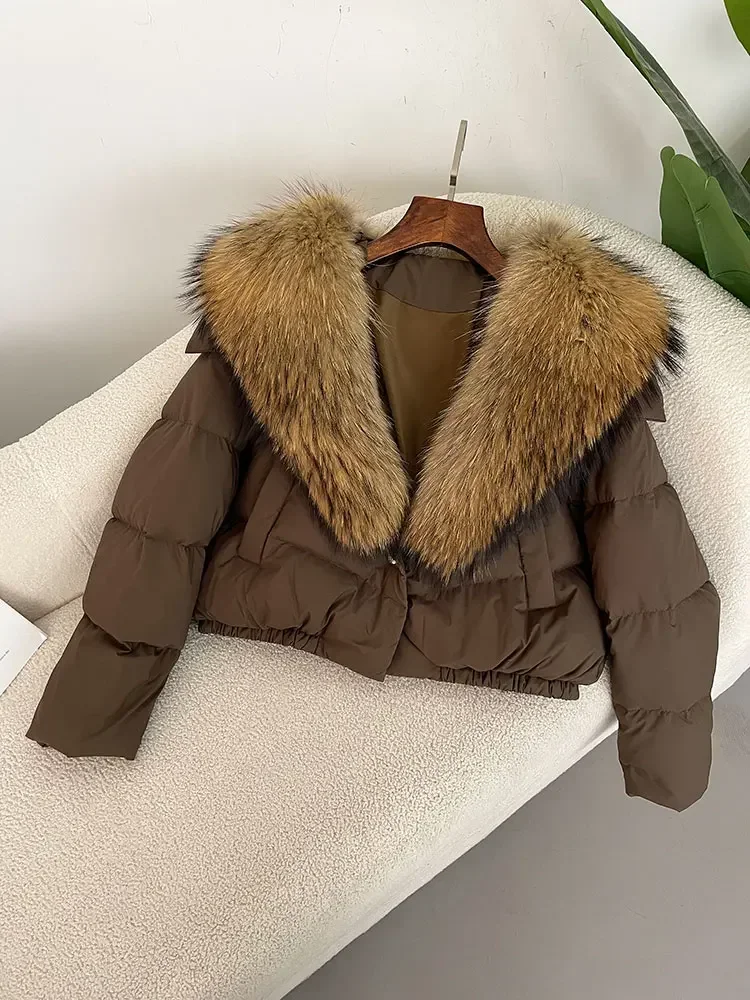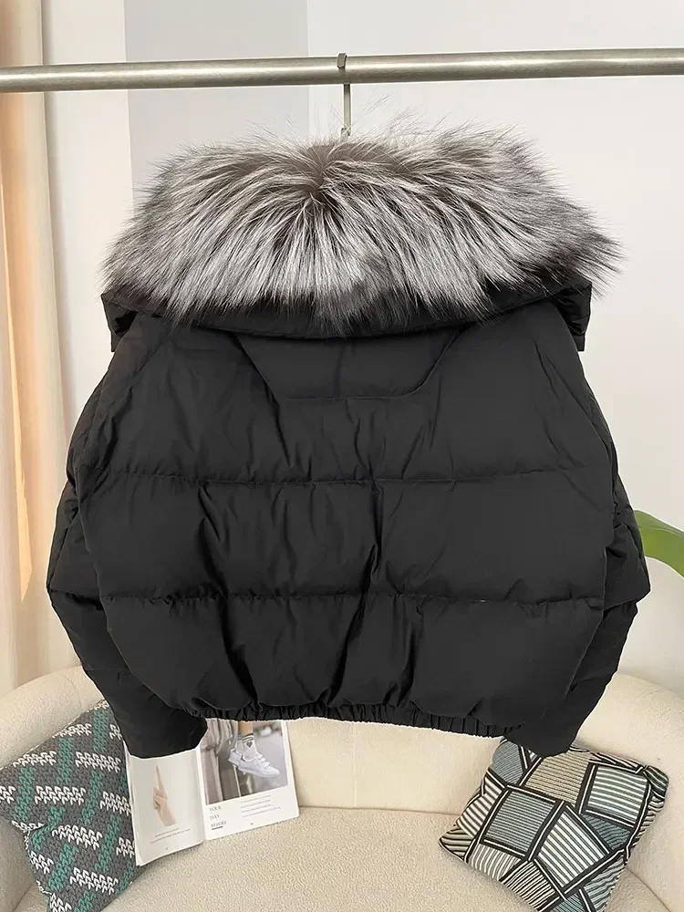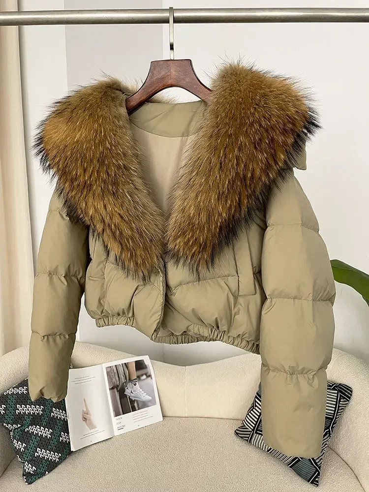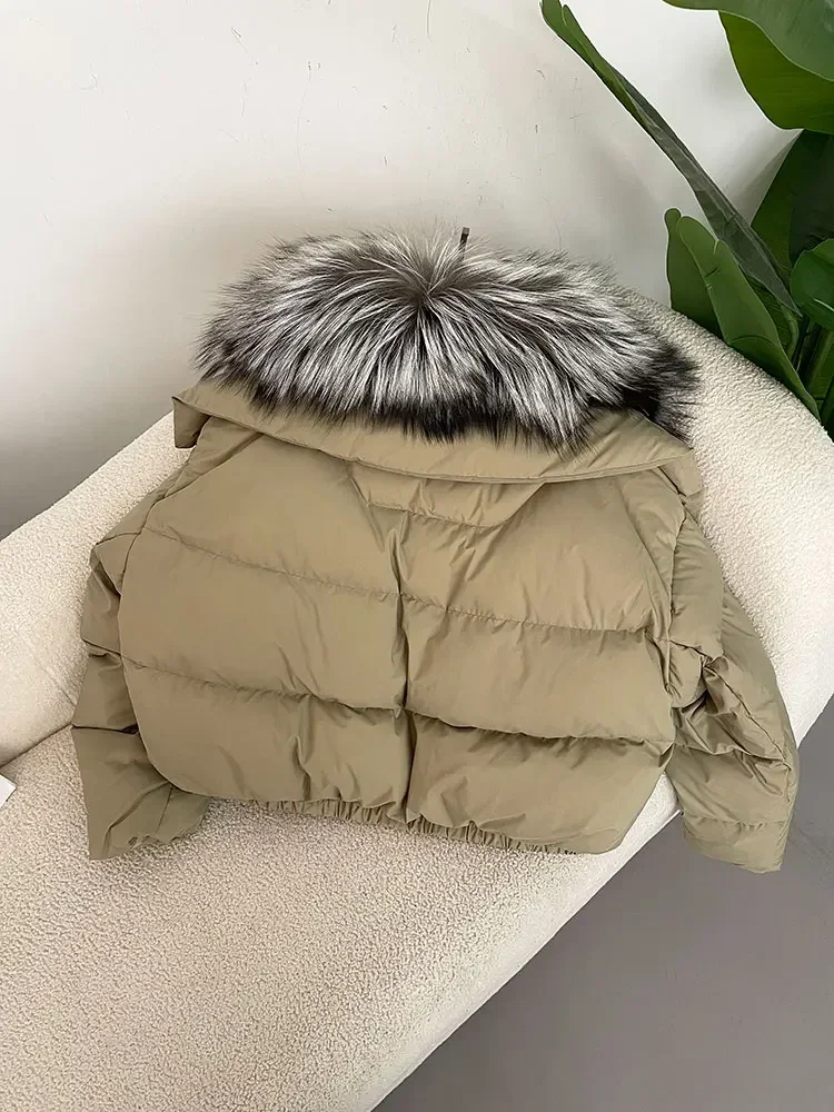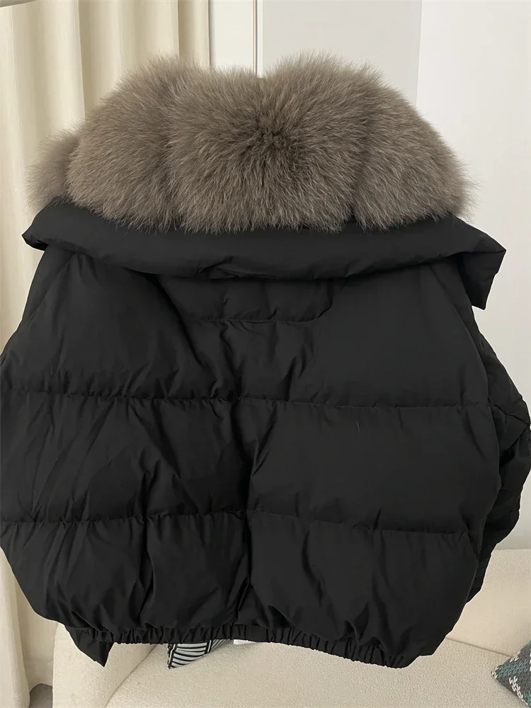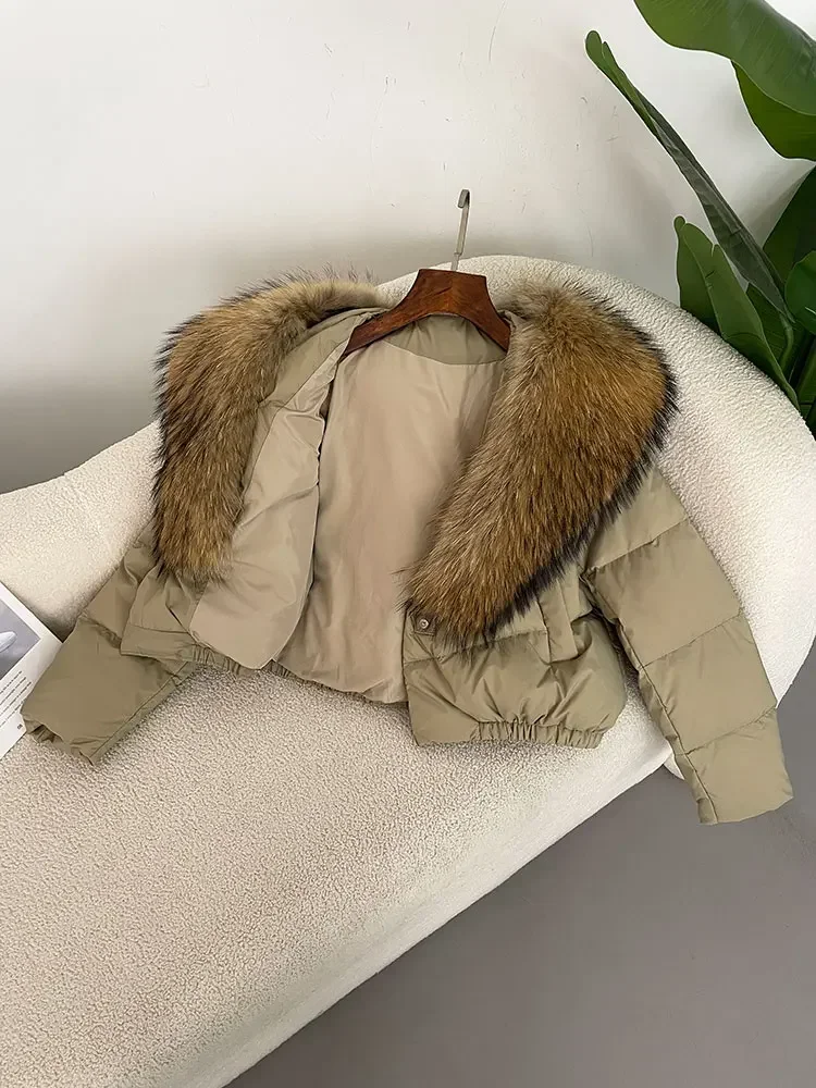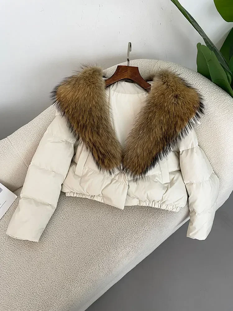 cropped duck down winter coat with real fox fur