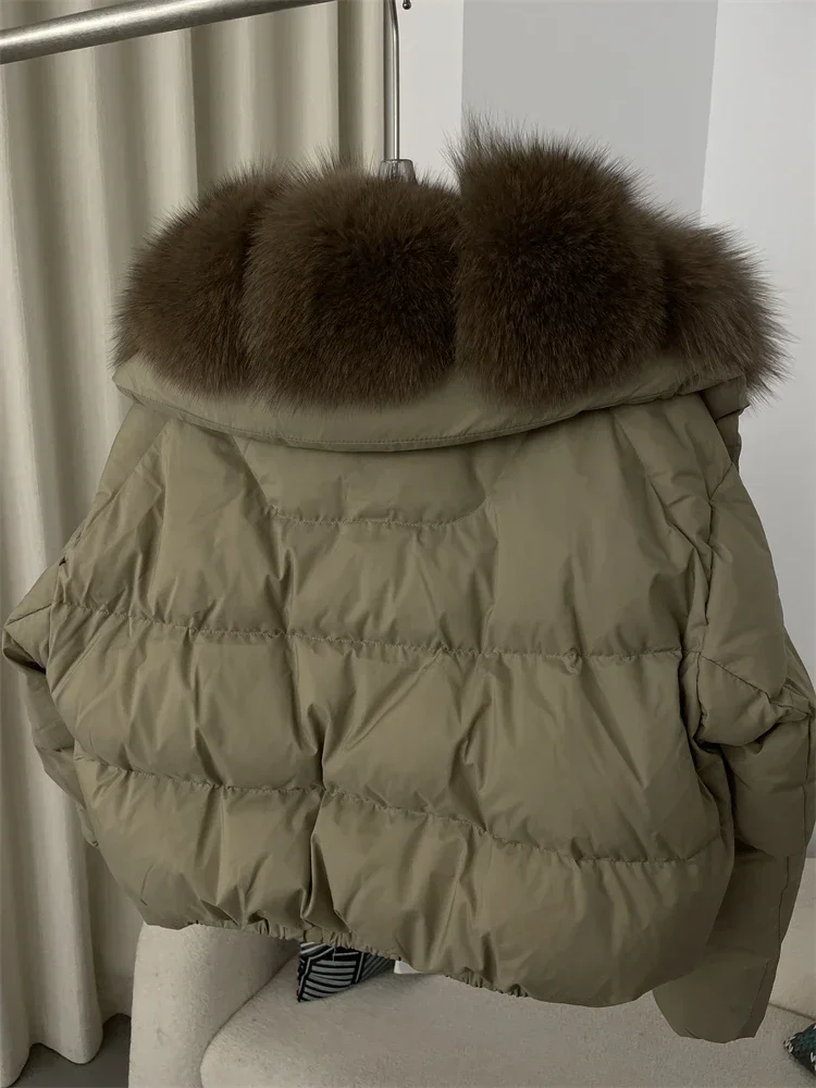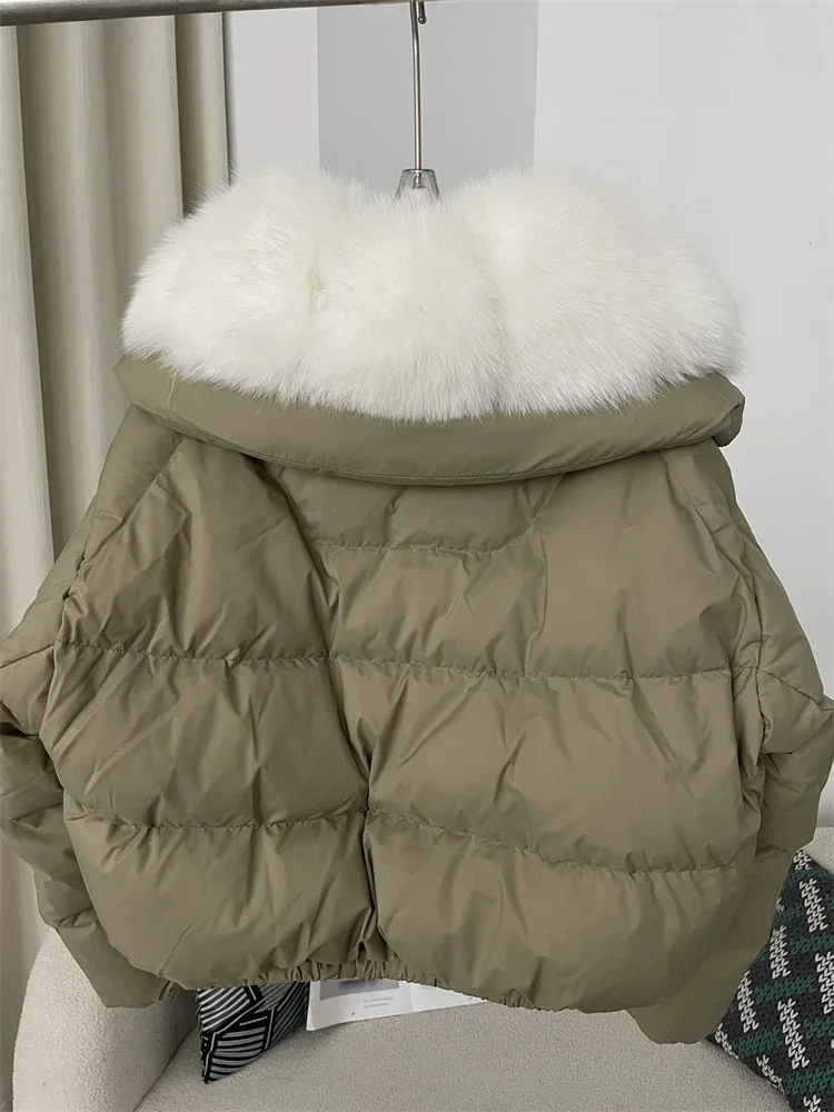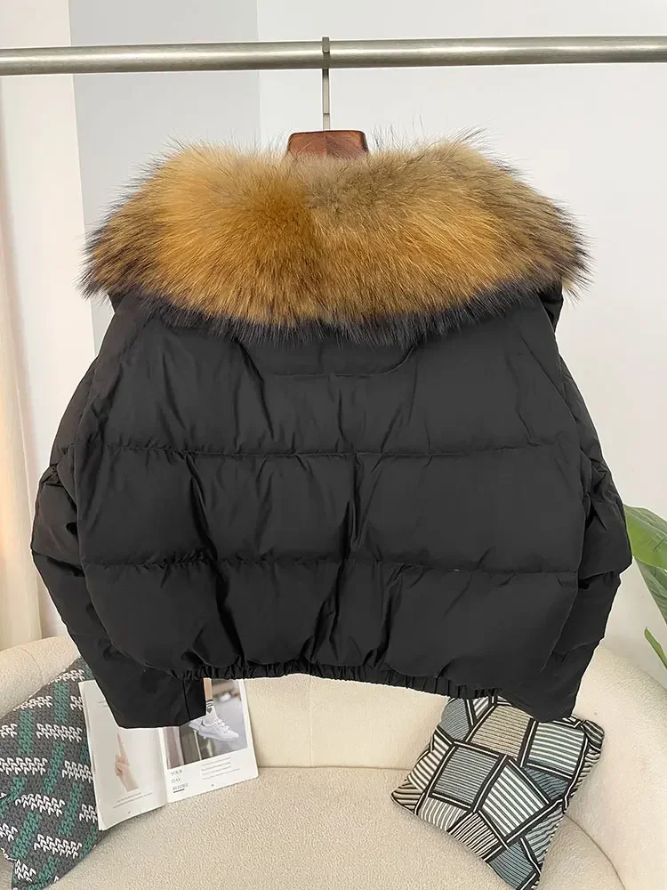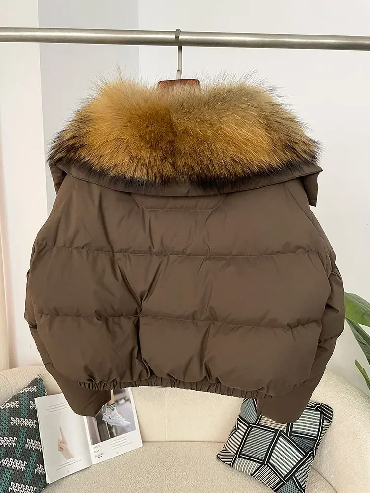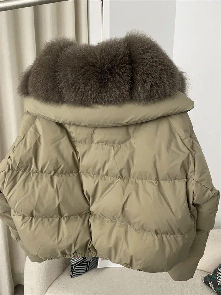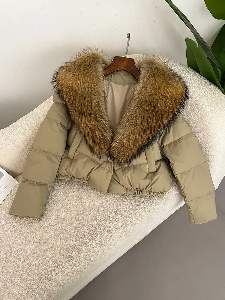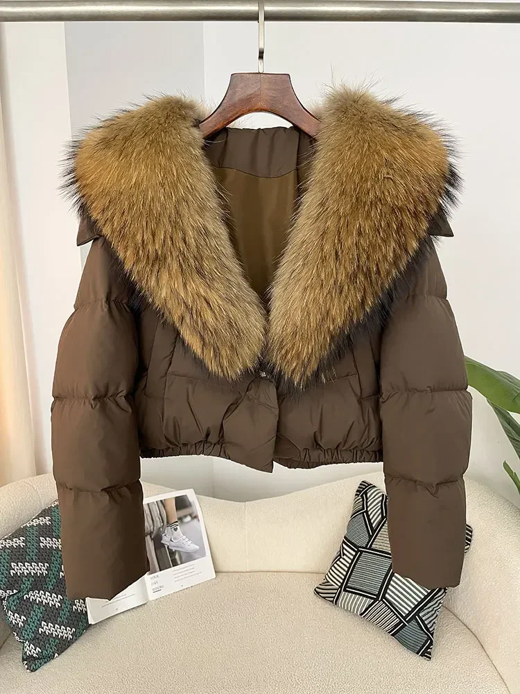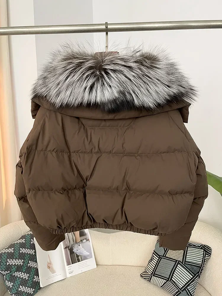 cropped duck down winter coat with real fox fur