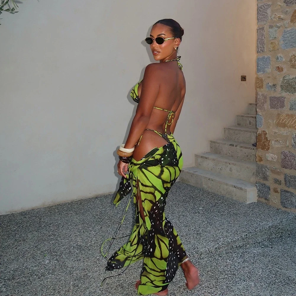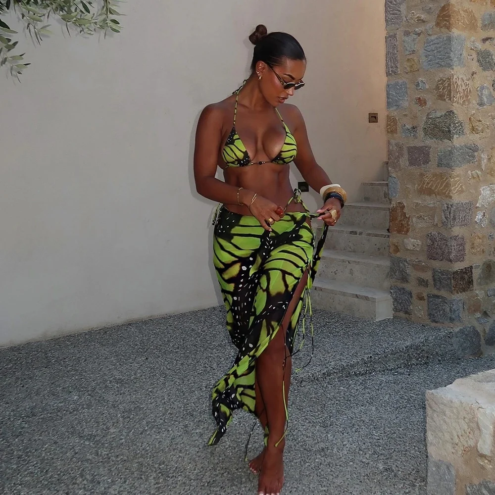 Butterfly print bikini and cover up