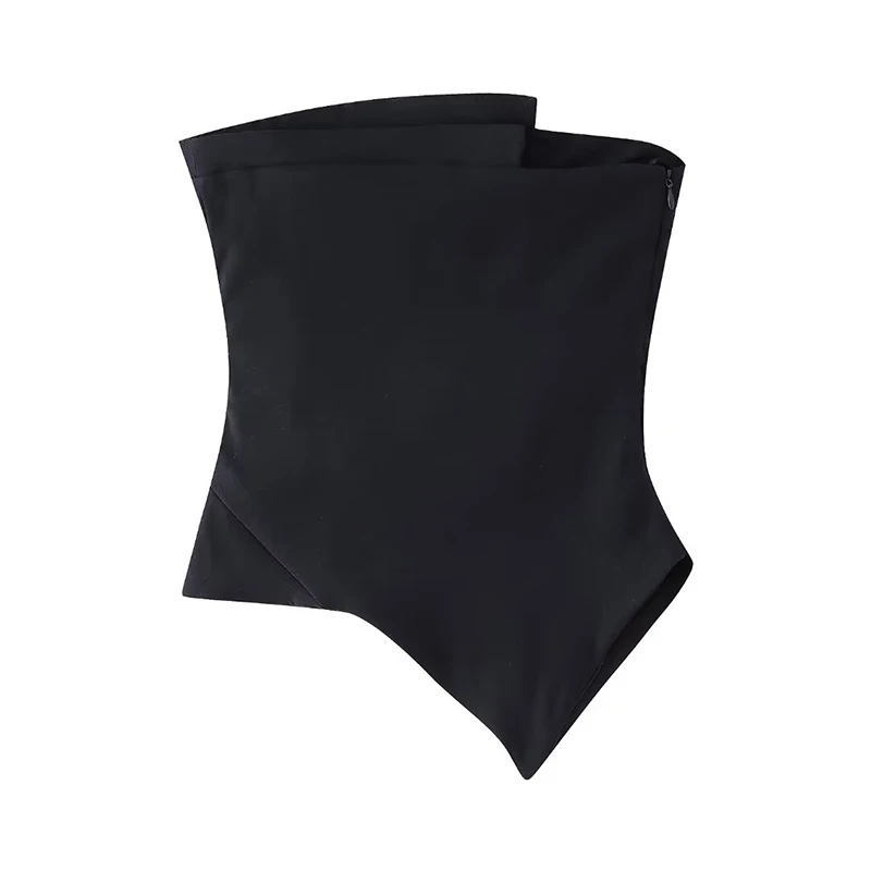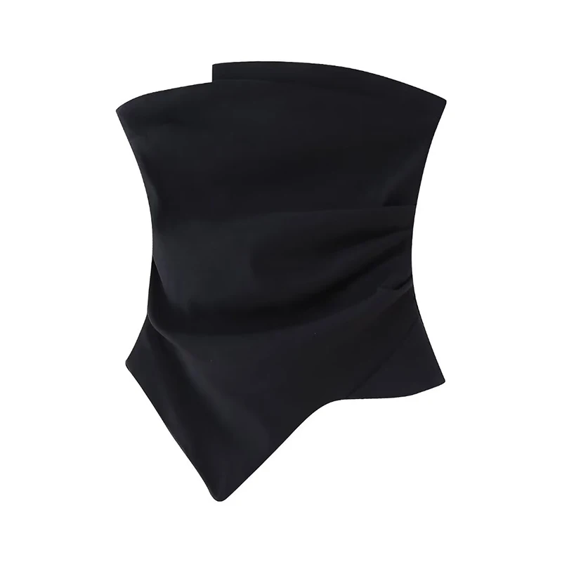 Solid strapless Pleated Side Zipper Asymmetrical Tops