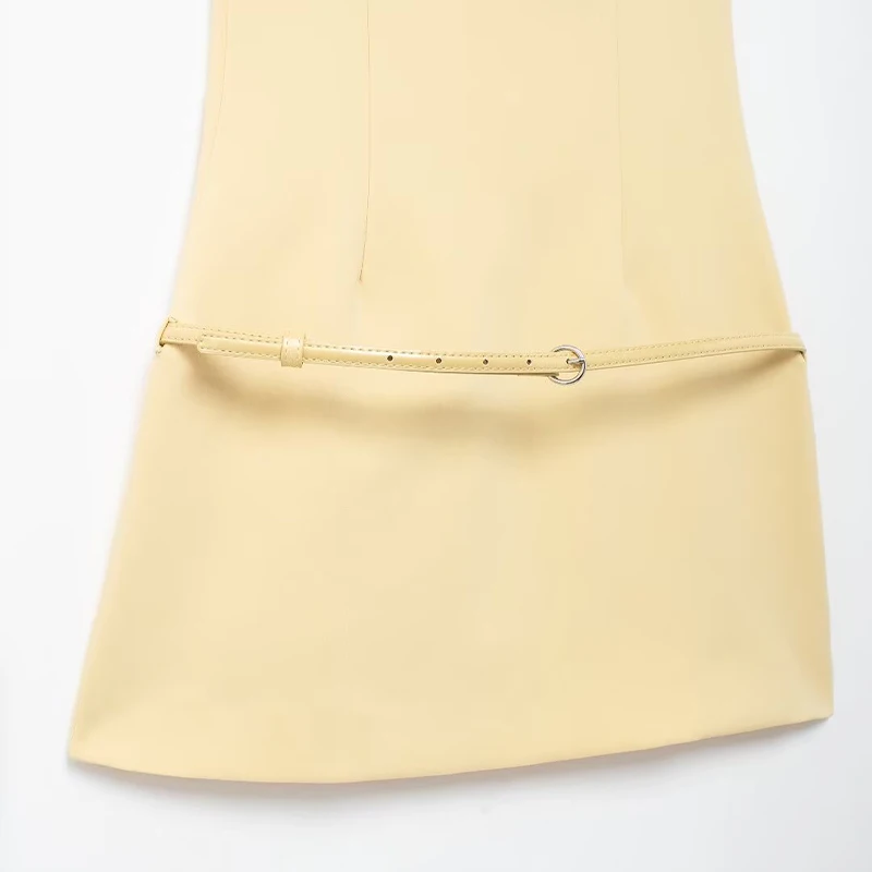 This dress is made of non-stretch polyester fabric with a regular sleeve style. It features a solid pattern, straight silhouette, and O-neckline. There are no high-concern chemicals involved and it comes with a sash for decoration. The fit is regular and the dress falls above the knee with a mini length. It is suitable for all seasons and has a zipper closure. The material composition is primarily synthetic fibers and the waistline is natural. The dress is designed for juniors and originated from Mainland China's Jiangsu province.