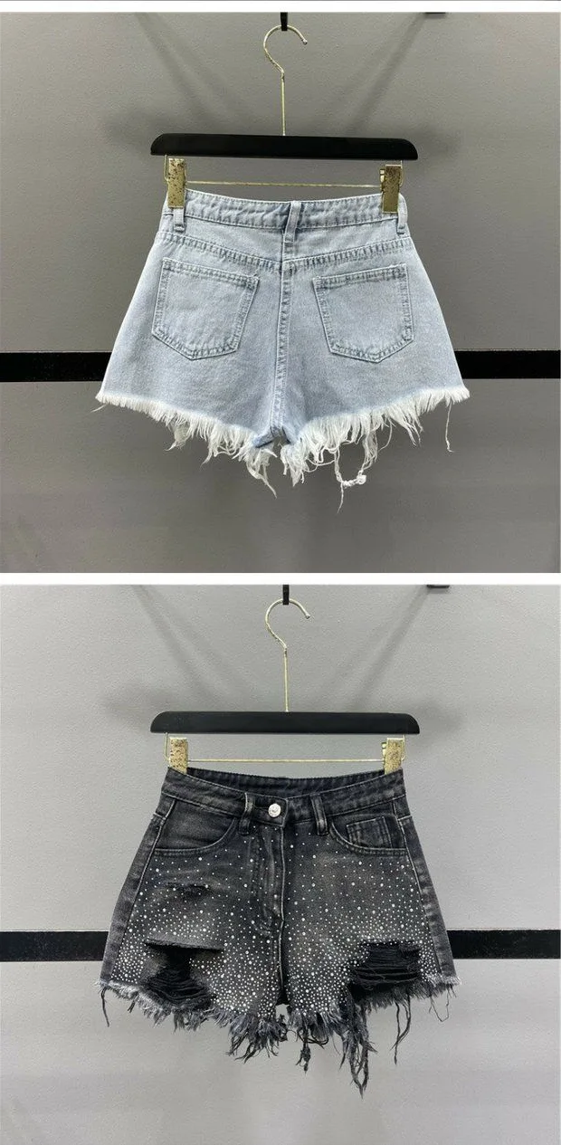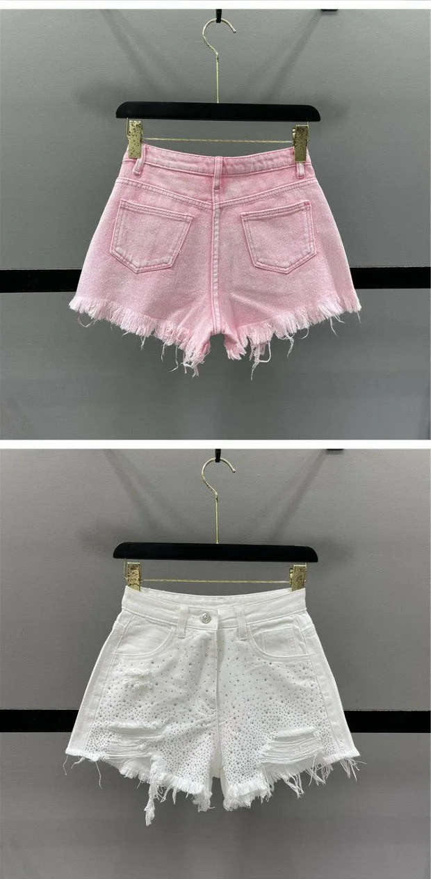 This product boasts a decorative design with CRYSTAL accents and is made of a blend of COTTON and POLYESTER denim. The Korean-inspired style features a solid pattern and is perfect for the summer season. Designed for junior sizes, it has a high waist and a regular fit that doesn't use any chemical treatments. Crafted in Mainland China, specifically in Guangdong province, this garment showcases expert craftsmanship with a focus on traditional weaving techniques.