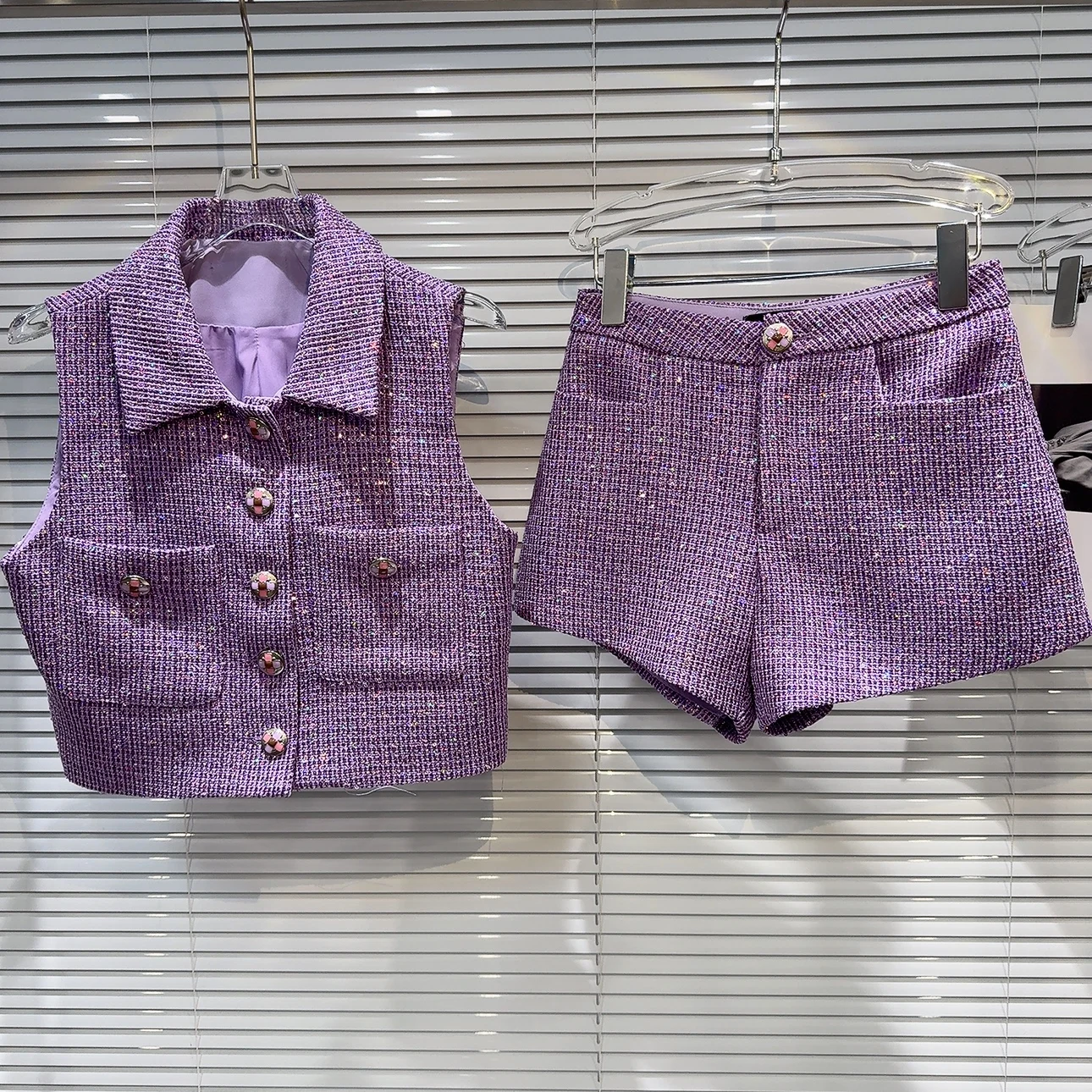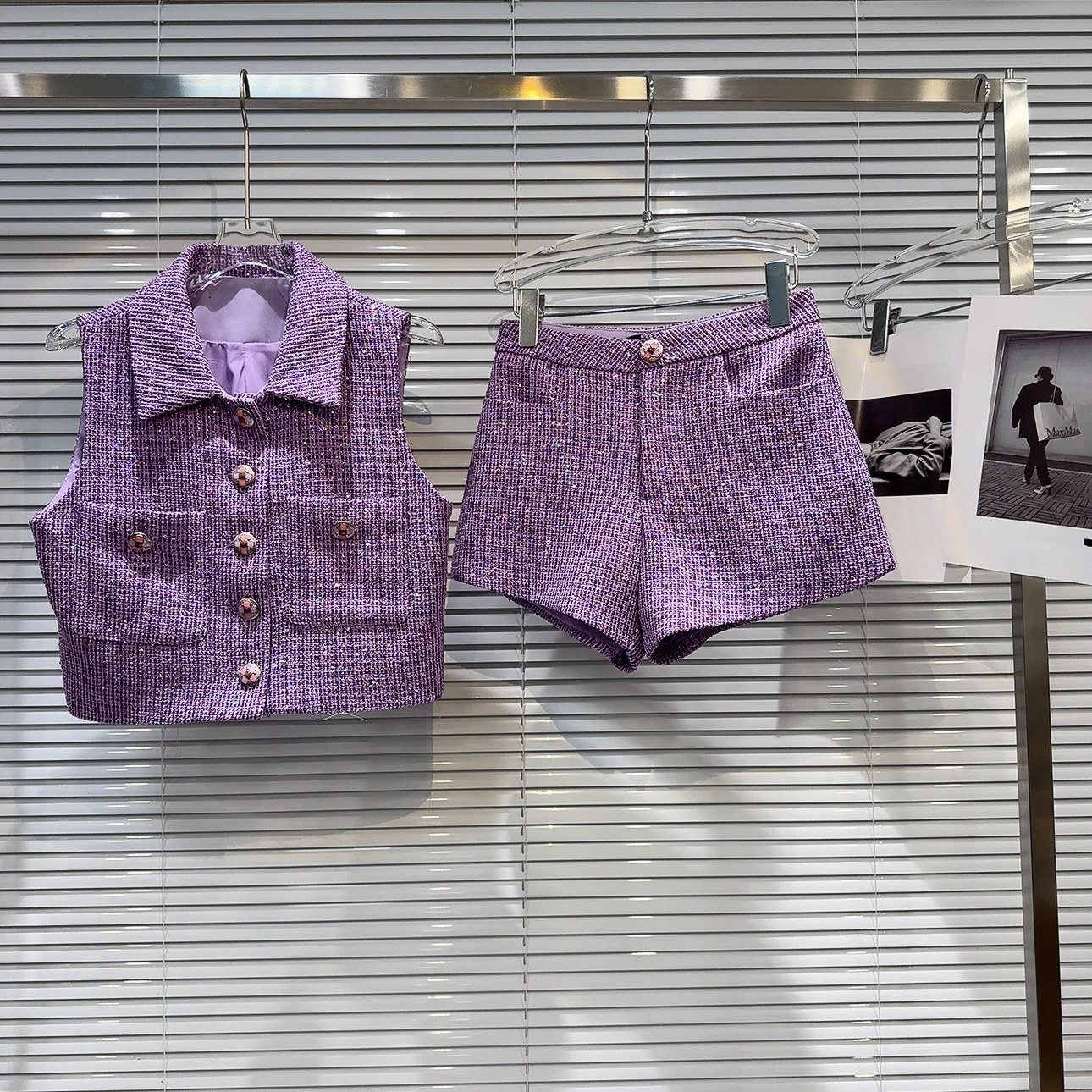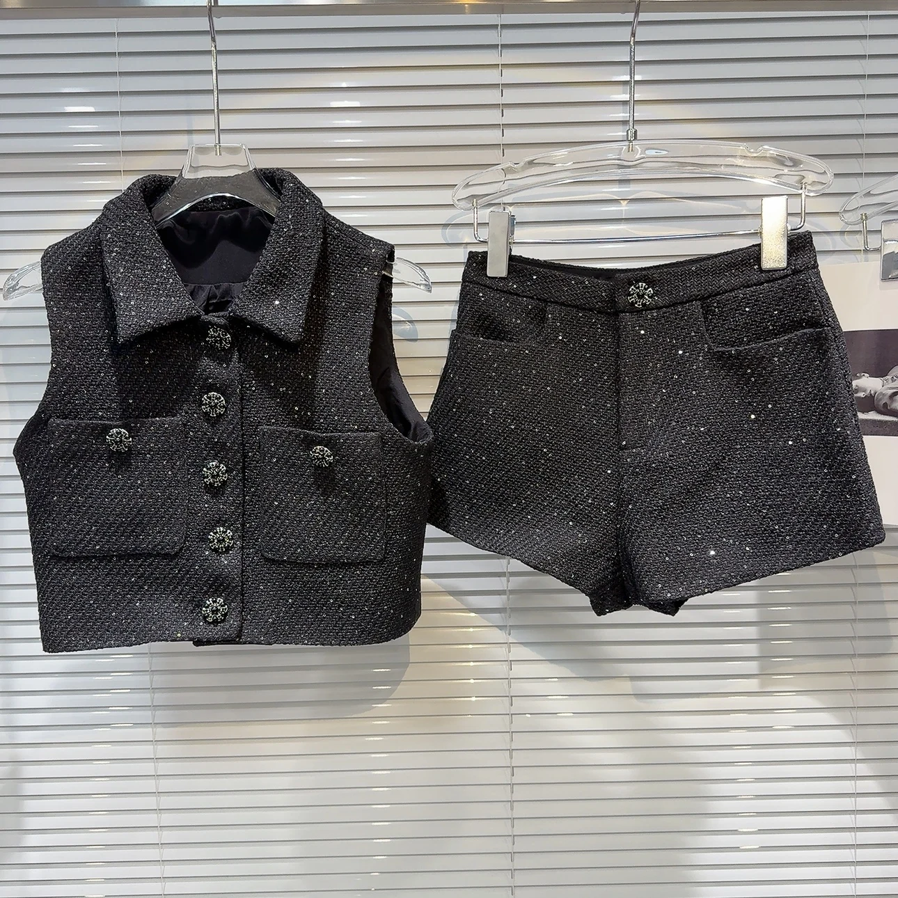 Shorts Set Lady Sleeveless Single Breasted Short Tank Top + Shorts