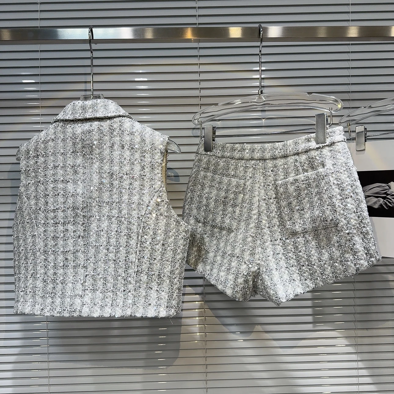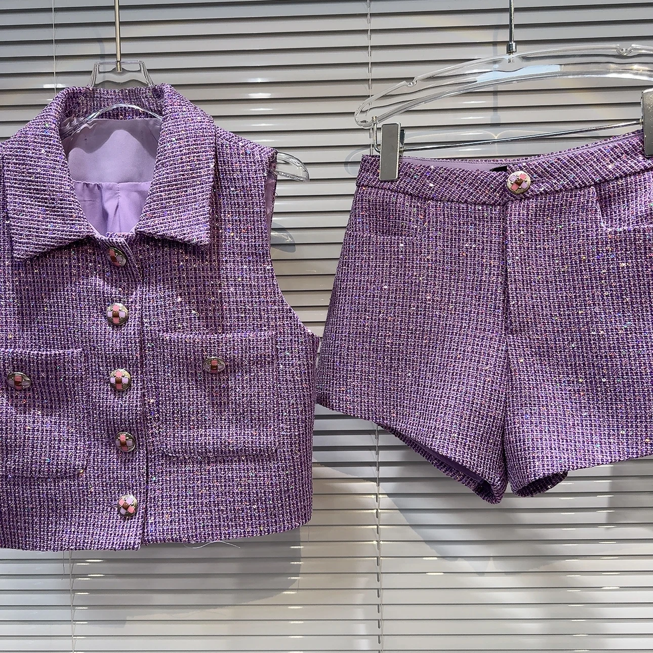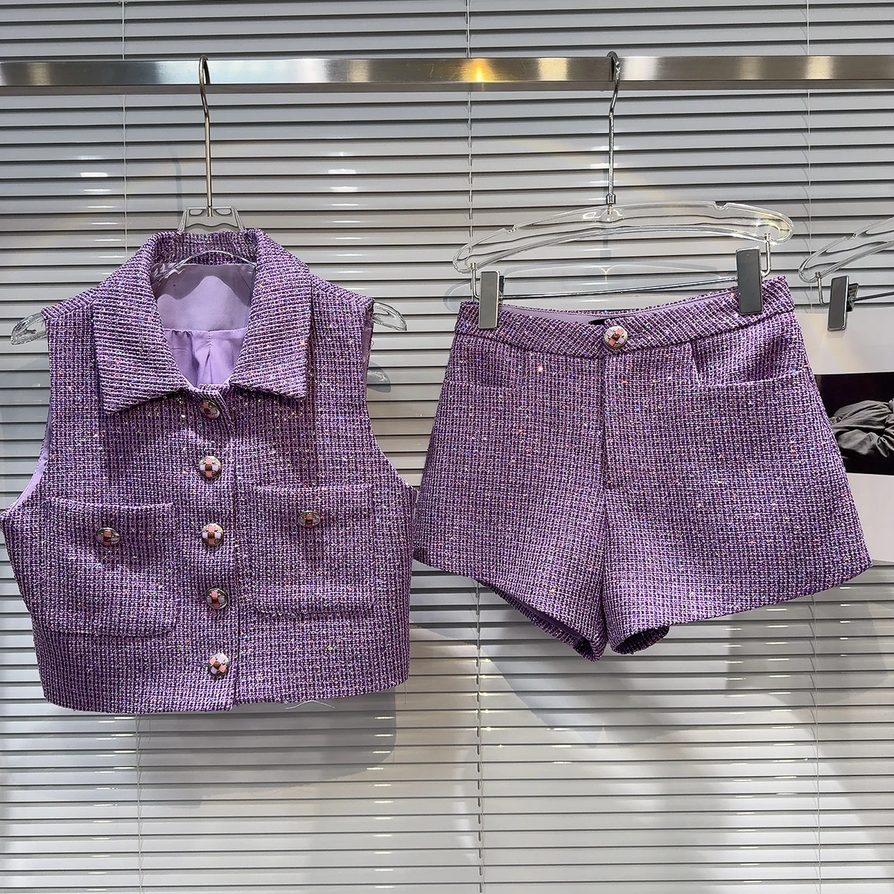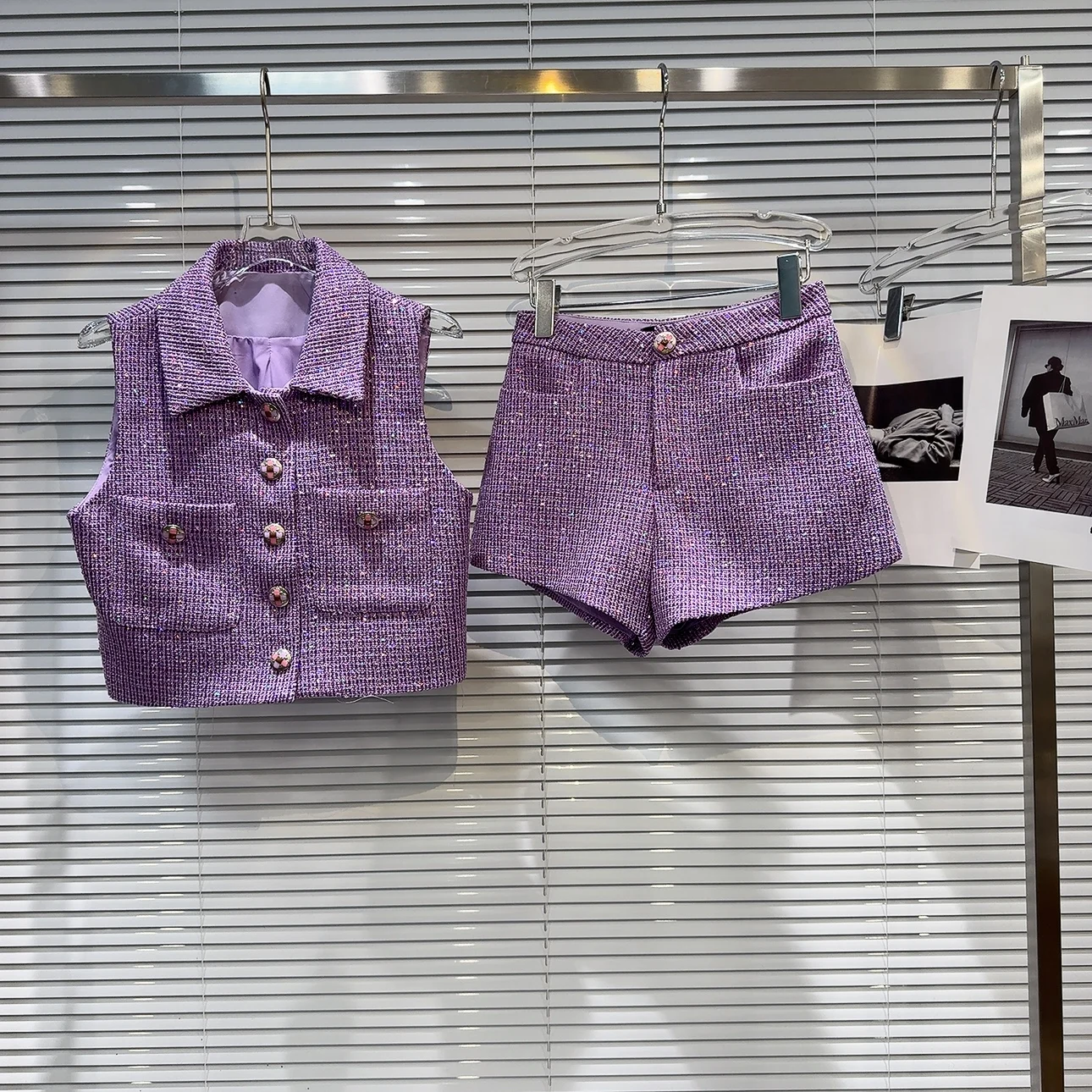 Shorts Set Lady Sleeveless Single Breasted Short Tank Top + Shorts